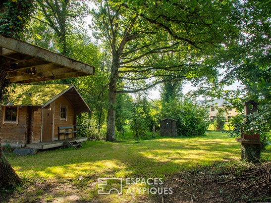 In addition, there is a large double garage, an equipped chalet on the edge of the pond as well as a shelter and its paddock; considerable assets for animal lovers, allowing them to welcome them in a ready and suitable environment.