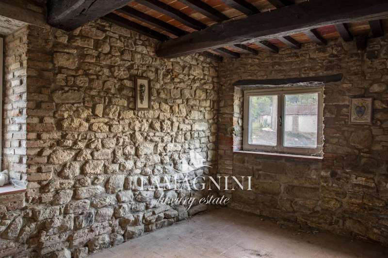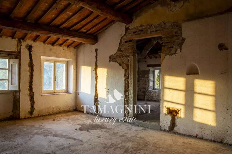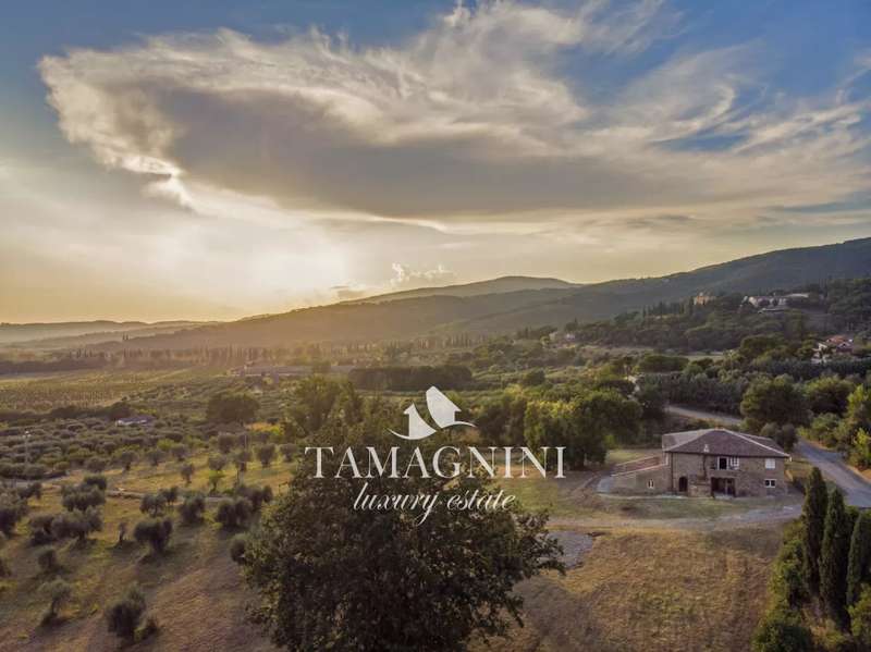 Charming countryhouse in a picturesque landscape, between Tuscany and Umbria, surrounded by olive groves and vineyards with a panoramic view from Lake Trasimeno to the Tuscan hills; dating back to 1720 "Le Antiche Querce" welcomes us with an ancient fountain and stone washhouse. The main home its a rustic and traditional style, retains the typical charm of country houses with some stone walls, exposed wooden beams and a tiled roof, the ancient oven. Surrounded by about 3 hectares of land. with about 80 centuries-old olive trees in production, part of arable land with the possibility of replanting for a vineyard The property is surrounded by a rich availability of water resources with: three artesian wells for collecting rainwater with respective electric pumps, the connection to the public aqueduct, a spring, two waterways that cross the property, all representing an added value. Le Antiche Querce was structurally consolidated in 2024 from the foundations to the roof (insulation, anti-seismic as required by law regulations) the main home measures approx. 350 m2 completed by 2 additional annexes for 80 m2. The interiors are spacious and bright and need to be completed, thus offering the possibility of customizing the spaces according to your tastes and preferences. The large rooms lend themselves to being furnished with style and originality, creating welcoming and comfortable environments. On the ground floor there are 2 large lounges, with an ancient arch and stone walls, 6 large rooms all connected internally with a beautiful panoramic view of the countryside and Lake Trasimeno. On the first floor (reachable by an external staircase in ancient stone) there are 6 large rooms with a view all connected to each other; among these, the atrium has a large and ancient fireplace, in pietra serena, working; it is possible to create an internal staircase connecting the two floors. Le Antiche Querce , to be completed in the interior, represents a unique opportunity to create the house of your dreams, ideal for two families or for a hospitality project in a natural and suggestive environment between Tuscany and Umbria; ideal place for those who want to live immersed in the peace and tranquility of the countryside without sacrificing comfort and well-being A swimming pool can be built, all the projects for the completion of the internal works and quote are available. The Country house is located in a strategic position, quiet area, renowned cities of art and villages that offer a rich cultural and artistic heritage to explore. The access road is asphalted and all the main services in the village of Passignano can be reached in a few minutes by car. Nearby Cortona 20 minutes, Perugia airport 30 KM, Florence, Siena, Assisi, Gubbio, Rome, train station Terontola –Cortona 15 minutes