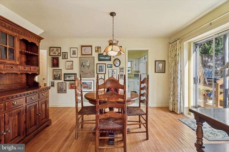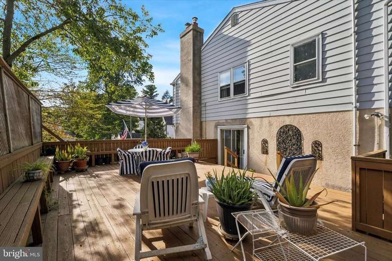 At the end of a quiet block in the quaint, yet eclectic borough of Narberth, awaits this spacious twin home. As you enter the front door, charming hardwood floors greet you and a beautiful, brick surrounded, wood-burning fireplace is the focal piece of the living room. Large windows illuminate this room, and a generous coat closet completes the space. The hardwood floors flow seamlessly into the dining room, where sliding doors grant access to the large, deck addition creating a wonderful entertaining space and an outdoor retreat. A convenient first floor powder room is also found here. The spacious eat-in kitchen features a large pantry closet and access to the added sun porch with skylights. Upstairs you will find a meticulously cared for hall bathroom, linen closet, two good-size bedrooms with excellent closets as well as the primary bedroom featuring double closets. Attic access is easy with pull downstairs in the hallway. The finished basement is neat and tidy and provides a versatile space for an office or tv room. There';s phenomenal storage down here, under the stairs, and in the utility room. The laundry room features shelving, built in cabinets, a large cedar closet and access to the enclosed storage area and exterior. The driveway allows parking for 2+ cars and opens to a paver patio with arbor for additional outdoor enjoyment. This home has been lovingly cared for and maintained for the last 40 years. It is primed for its next chapter. Steps from the Narberth playground, library, downtown, and train station—an unbeatable location. Enjoy local shops, restaurants and Lower Merion schools.
