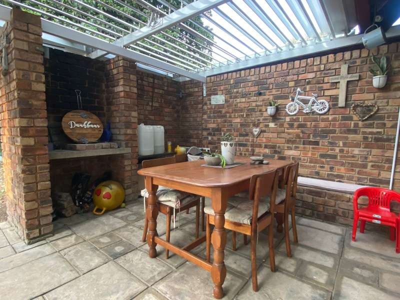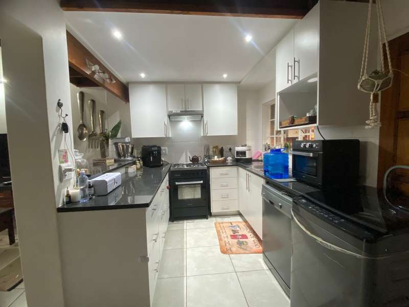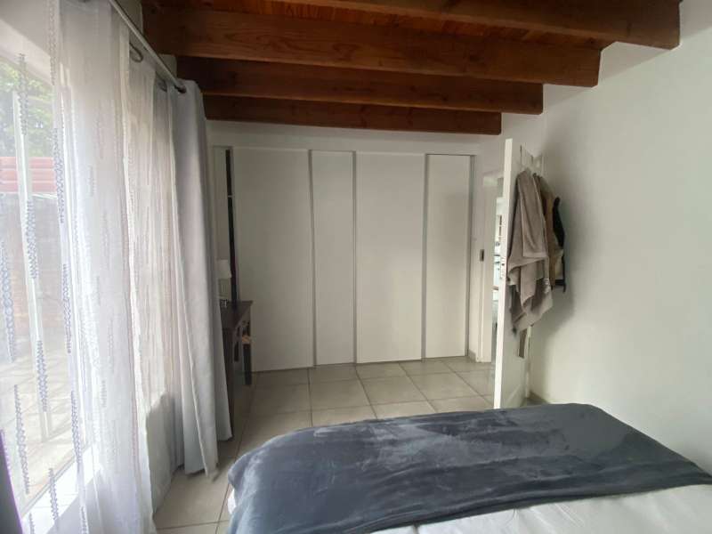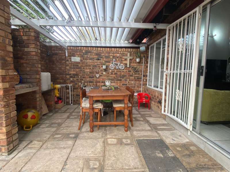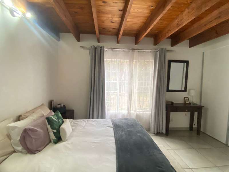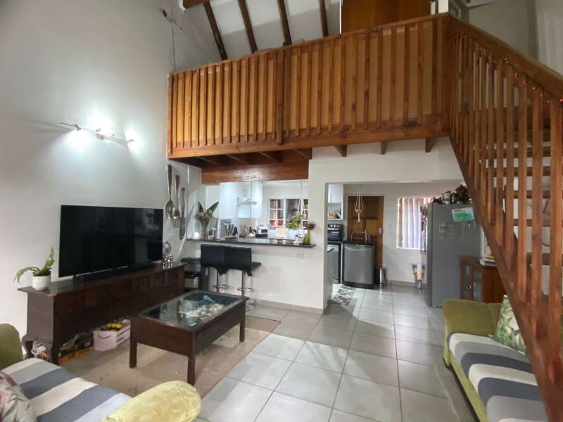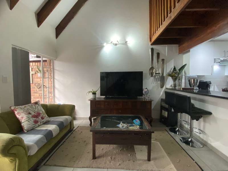 This character-filled townhouse offers the perfect balance of comfort and functionality. Featuring 3 bedrooms and 1.5 bathrooms (including a full bathroom and an additional shower with toilet), it’s designed for easy living. The heart of the home is the open-plan lounge and kitchen, complete with granite countertops, a gas stove, and a breakfast counter – perfect for everyday meals and entertaining. Step outside to the patio with a louvre awning and built-in braai, overlooking a garden ready to be refreshed into your own private retreat. Upstairs, the main bedroom is a true standout with wooden floors, air conditioning, exposed beams, and a stunning double-volume ceiling that adds both charm and space. With its inviting layout and unique features, this townhouse is ideal for those seeking comfort, character, and convenience in one home.