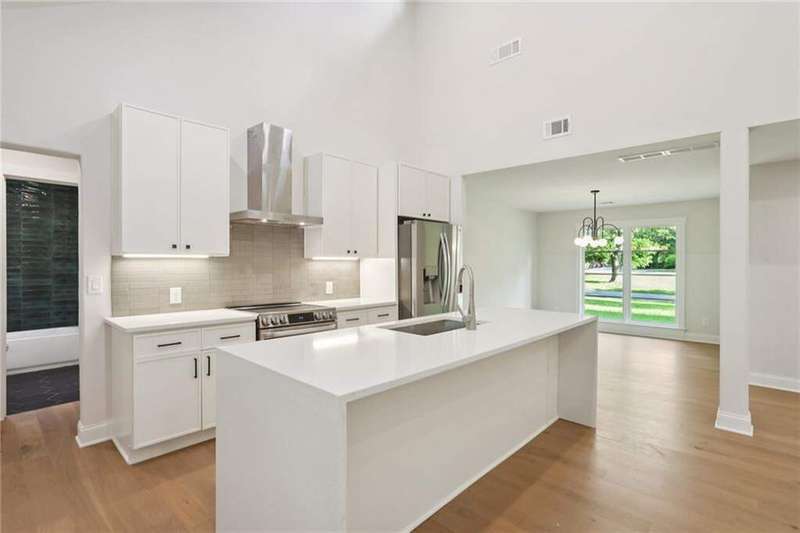Spectacular total renovation of a modern ranch close to the Marietta Square and in West Side Elementary district with a brand new PERIMETER FENCE!! Design by Dana Poor (Boxwood Designs) and construction by New Rosslyn Homes (David Sinclair). BRAND new kitchen, brand new baths, all new flooring, all new paint, new plumbing, new light fixtures, all new windows, new doors, new garage door opener. New washer/dryer included! Custom brand new primary closet. Spectacular kitchen with a huge island featuring quartz countertops and a waterfall edge. HUGE yard on a gorgeous corner lot. Move-in ready.