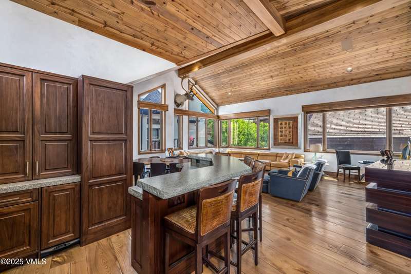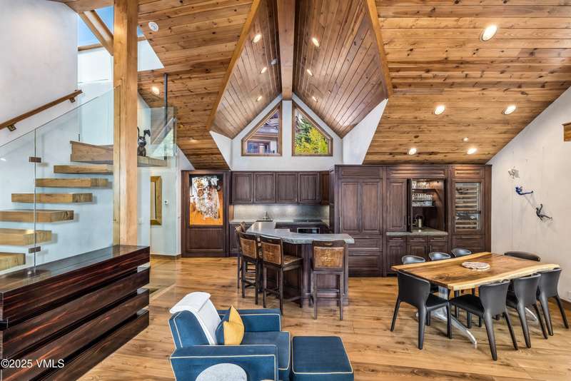 Live the ultimate Vail lifestyle in this exceptional 5-bedroom townhome in the heart of Vail Village. Designed to live like a single-family home, this residence combines privacy, accessibility, and alpine luxury. Expansive windows frame Vail Mountain views while soaring ceilings and rich wood finishes create a warm mountain retreat. Entertain with ease in the open-concept great room, expertly designed kitchen, and dining area. Each bedroom is a private haven with spa-inspired baths. With a deeded parking space and world-class skiing, dining, and shopping just steps away, this rare property offers unmatched comfort and convenience in Vail Village.