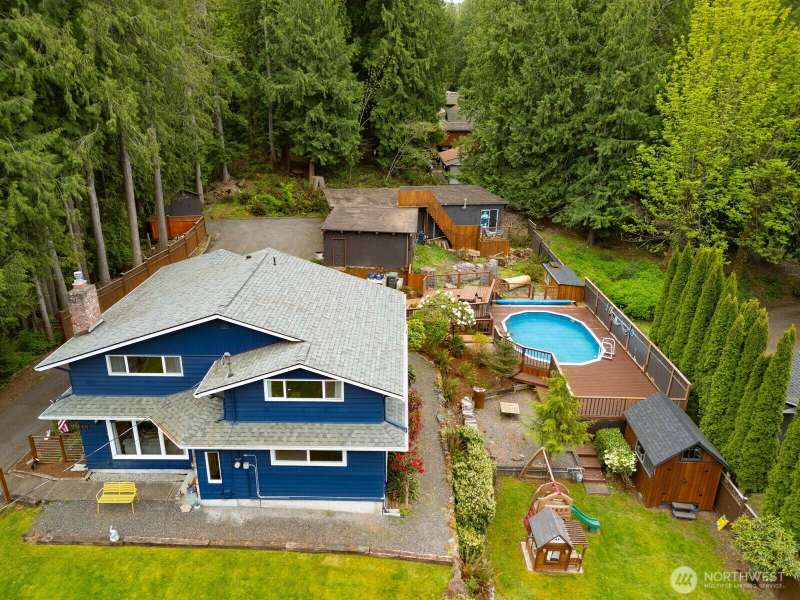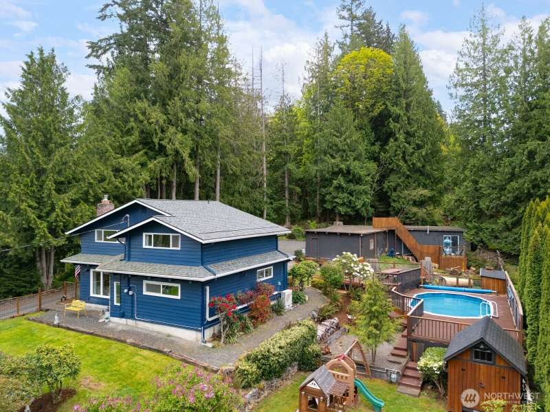 Live on over half an acre just outside town in this 4-bedroom Craftsman home — with direct backyard access to Ted Edwards Park and the Galbraith Trails. The property features covered parking for 5 vehicles, a swimming pool, and two main-floor living spaces with an open floor plan. Recent upgrades include: New roof and Leafguard gutters (2022), exterior paint (2020), new insulation, new pump house for the pool, updated electrical panel, mini-split system for heating and air conditioning. On the inside, you'll find updated bathrooms with tile floors, engineered hardwoods on the main, and carpet upstairs. This home is move-in ready with space to spread out, and adventure just out your back door. Inspection available! Sellers are motivated!