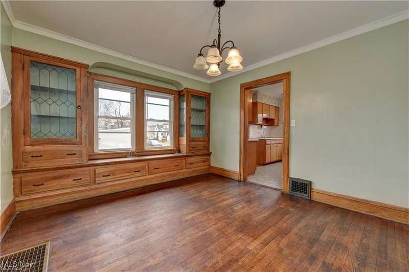 Now used as a rental gathering $1150 a month with leased terrific long term tenant in place.Phenomenal opportunity for a charming colonial in Cleveland's West Boulevard neighborhood! This home features hardwood floors, spacious bedrooms, and a nice sized backyard. It is just waiting for your creative vision! As you step inside, gleaming hardwood floors great you in the living room, which features a lovely brick fireplace. Off of the living room, there is a cozy sunroom. The dining room features lovely corner cabinets with leaded-glass doors and a window seat. The kitchen includes all appliances and a breakfast bar. Upstairs, you will find three spacious bedrooms and a full bathroom. The lower level includes a large rec room, a laundry area, and a full bathroom, plus plenty of additional space for storage. Outside, the backyard is partially fenced-in, and there is a detached two-car garage. Located just off of W. 150th Street, this home is convenient to area shopping and highways. Do not miss this one!