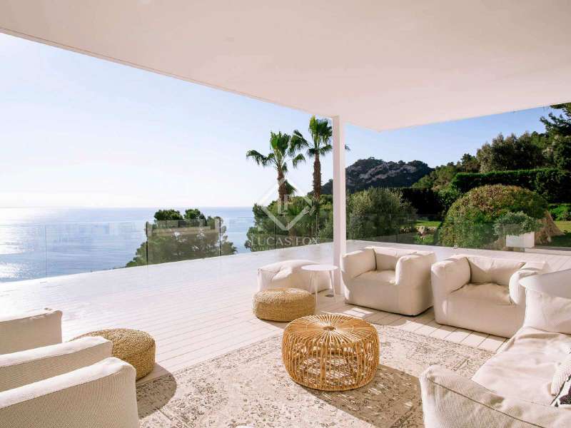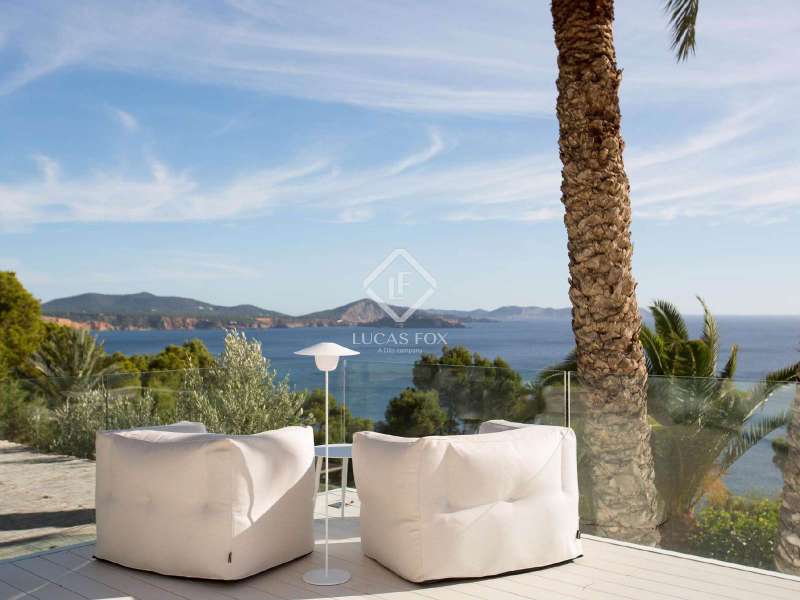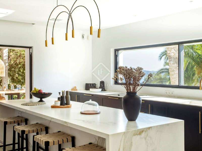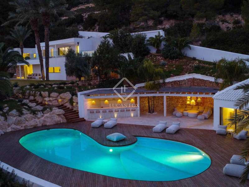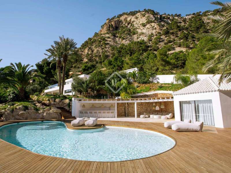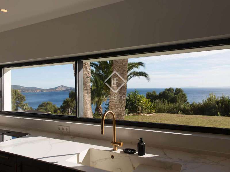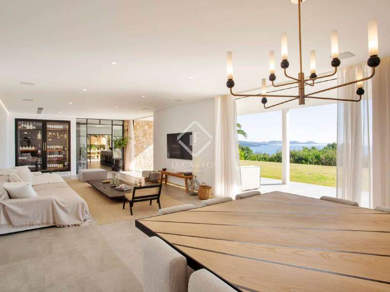 This villa is located in Ibiza's most exclusive private development, on the coast of the Es Cubells Natural Park, long regarded as one of the finest and most stunning locations for villas in the Mediterranean. The villa is one of the stunning properties that dot this rugged and dramatic setting. A truly unique luxury villa with expansive terraces, outdoor dining and entertaining areas, landscaped gardens and a majestic oasis-shaped swimming pool. Recently renovated in a sleek and modern style, it enjoys incredible sea views from its 5 bedrooms. A perfect luxury family retreat or exclusive entertainment getaway. The villa has five good-sized bedrooms, including a giant main suite. Four of these bedrooms are located on the upper floor of the main house. The last double bedroom is an elegant room that opens onto the pool. All bedrooms have sea views, air conditioning and access to the outside terraces. A wide stone staircase leads down to the lower level, where a large dining and living room benefits from the natural light from the large windows and its amazing views from the main garden. The living room has access to the porch and the main garden of the property, with amazing views of the Mediterranean Sea. From the living room there is direct access to a spacious kitchen which incorporates an outdoor area. In addition, the property has a tourist licence for 10 people.