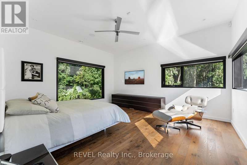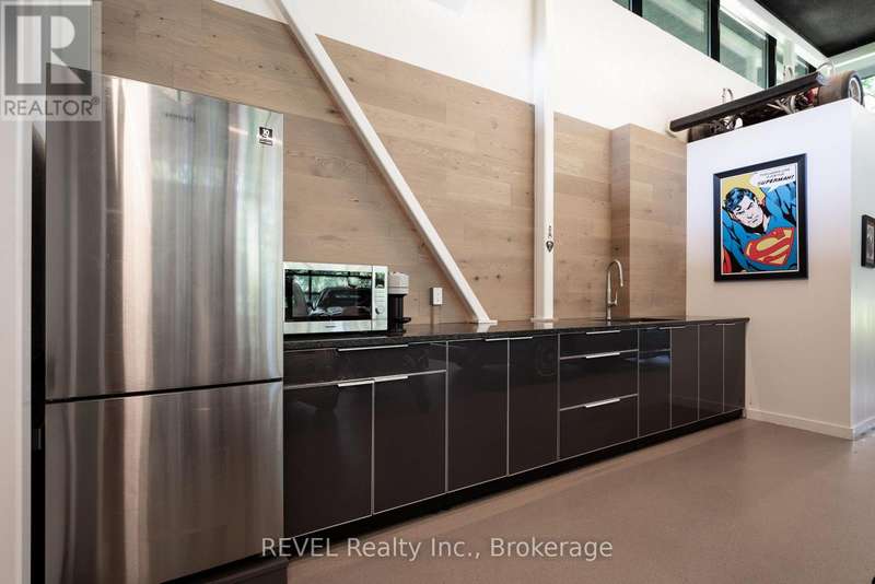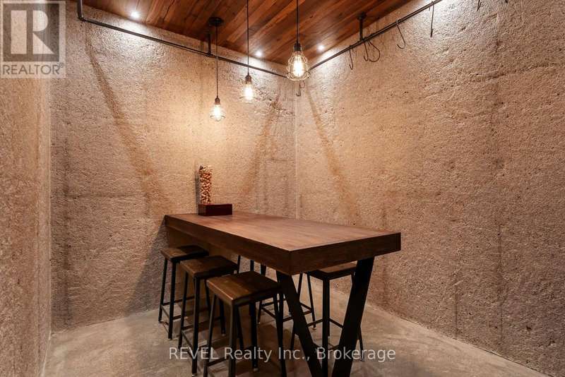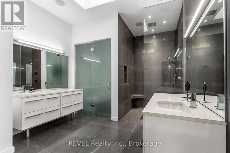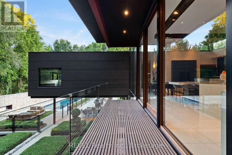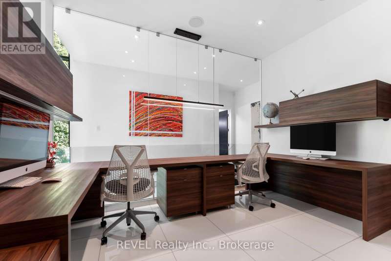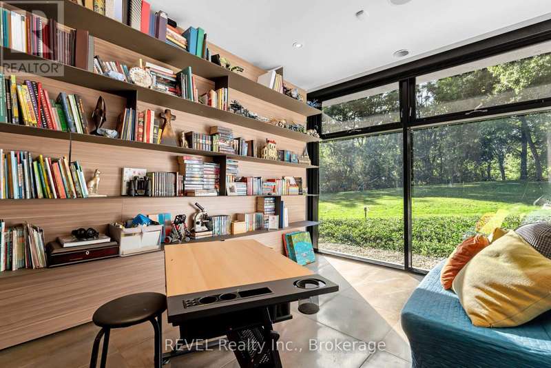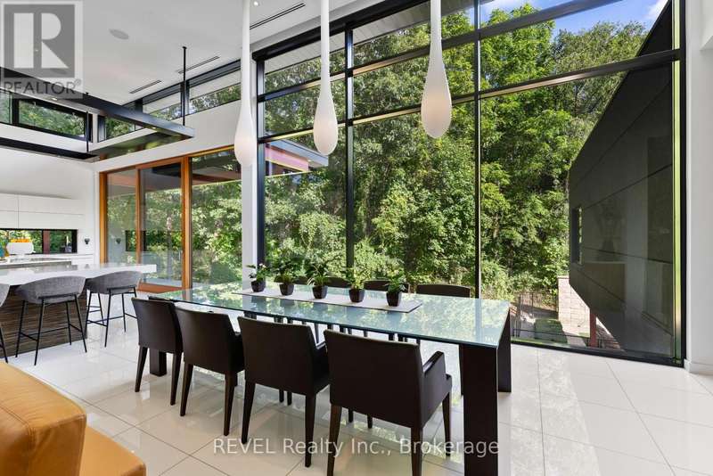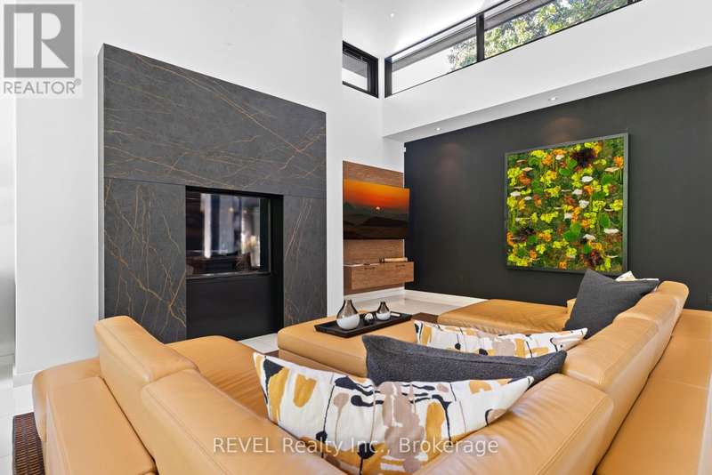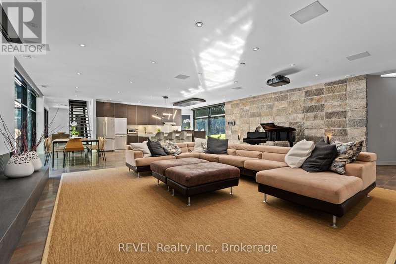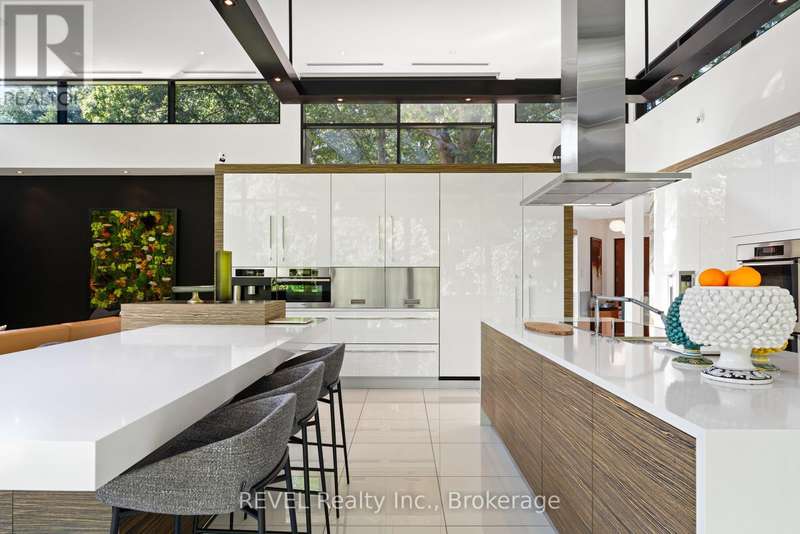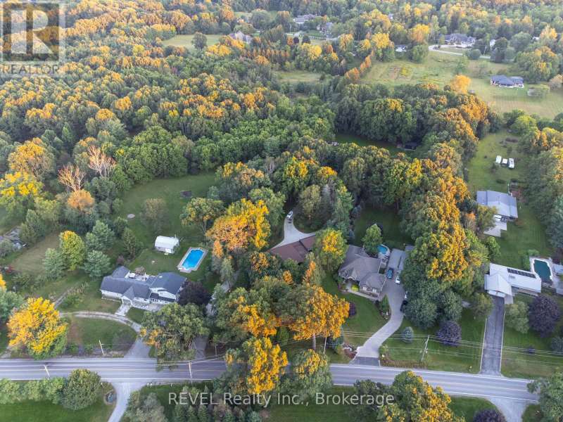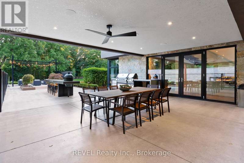 Architectural majesty and artistic risk define luxury for this modern bungalow estate in the charming township of Fonthill. Emerging from a 2.9 acre property populated by picturesque, Carolinian trees, this modernly unique one story creation with full walkout and floor to ceiling curtain wall windows, fuses a designer eye with an environmentalist's appreciation for natural integration. Structured with steel frame construction, and offering in floor heating via boiler and concrete floors on both main and lower levels, this mansions elite finishes, set against the views of forested privacy, present pleasurable pastoral perspectives and authentic tranquility, inside and out. Features include 16' ceilings in main living area; specialty imported glass porcelain tiles; engineered hardwood; fully automated light and sound systems by Crestron Products; surround sound theater area with power drop down screen; wine and artisanal meat cellar; enormous upper and lower designer kitchens with quartz stone countertops; three plus one spacious bedrooms; main floor glass walled office; master ensuite with oversized shower; and customized built ins throughout for exceptional storage capacity. The sauntering transition to resort worthy outdoor amenities is just as dazzling, with walkouts that seamlessly flow into a heated saltwater pool area with feature stone wall, outdoor gas fireplace, cedar clad washroom and change rooms. For the luxury car enthusiast, and with 400 amp electrical service available, enjoy the recently built 2600sq.ft showcase accessory garage(detached) that complements an oversized four car garage attached to the home. With approximately 5400 sq. ft of fully finished and fully serviced living space conceptualized to exploit every possible vantage point of this incredible landscape, this estate sets a new standard as the epitome of luxury listings. (id:7434)