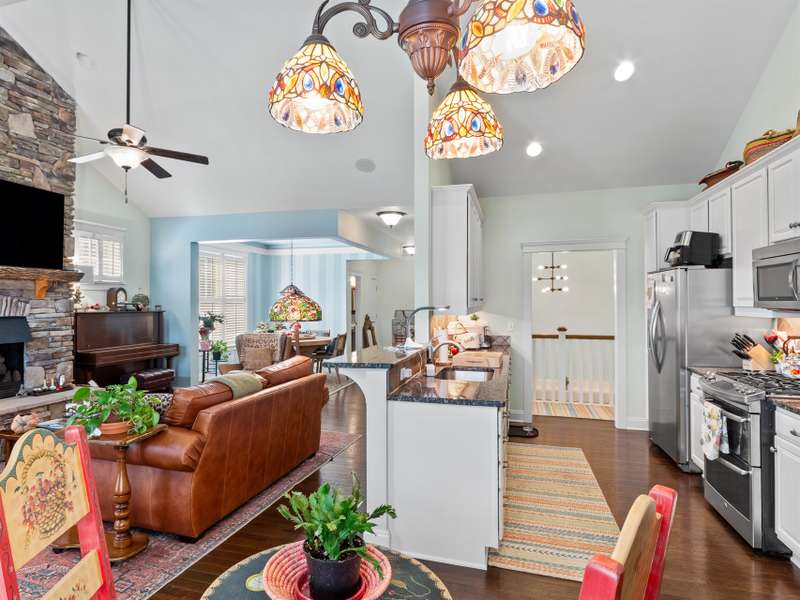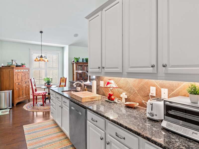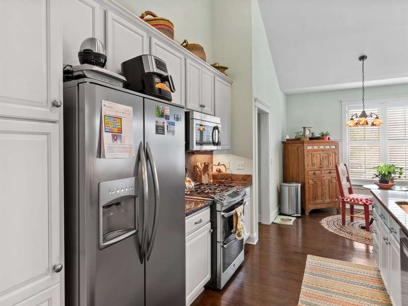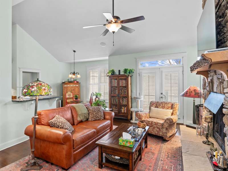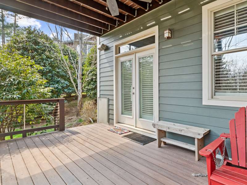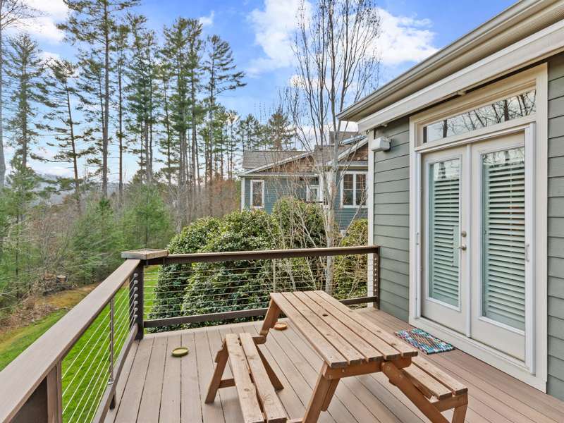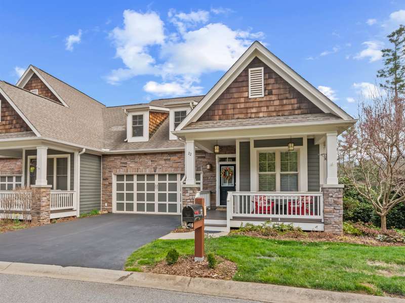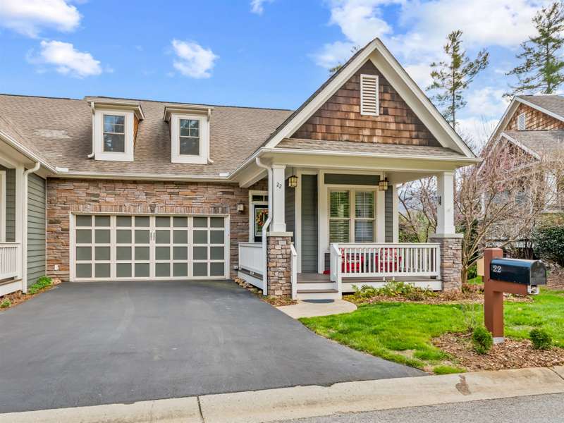 Rare find! End unit in gated Rockfish Cove in desirable Biltmore Lake. Lifestyle community with private 62 acre lake, miles of walking trails, non motorized boating, clubhouse, tennis/pickleball and basketball courts and more! Move-in ready home loaded with upgrades with open floorplan, 9'+ and cathedral ceilings, stone gas FP and year round views! Main level primary suite with walk in closet plus en suite full bath with double sinks, walk in tiled shower and garden tub. Open kitchen w/ Granite countertops, stainless appliance package and eat in bar. 2 guest bedrooms on lower level plus office/den on main level. On site level parking plus 2 car garage and plenty of guest parking at street. Townhomes are on a double culdesac street overlooking nature preserve at end of lake. Large covered porch, 2 rear decks with Trex flooring. Largest plan available!!