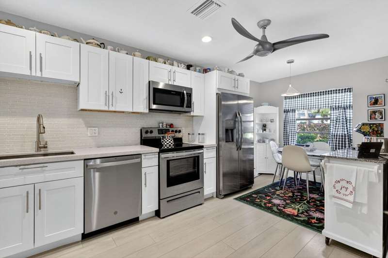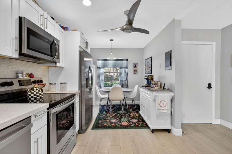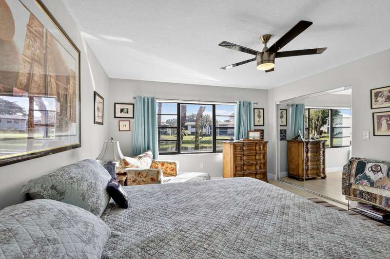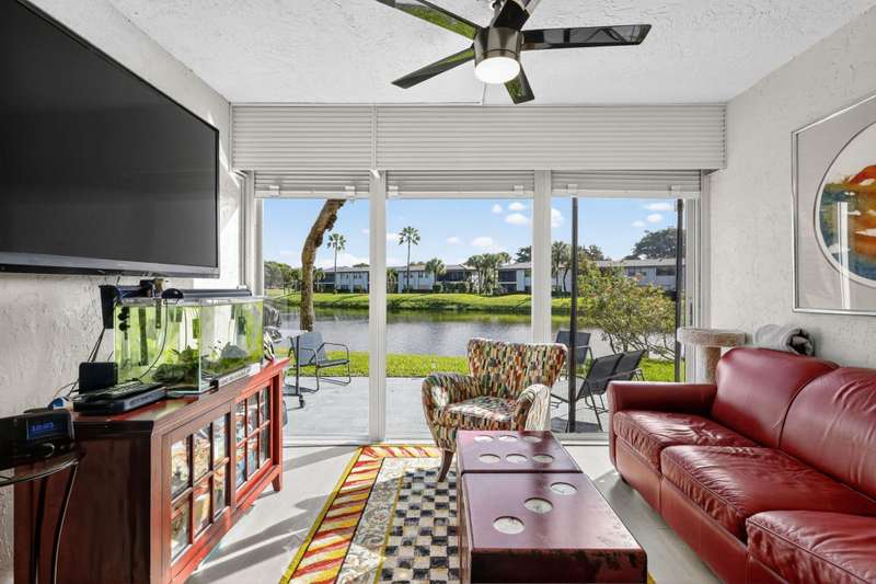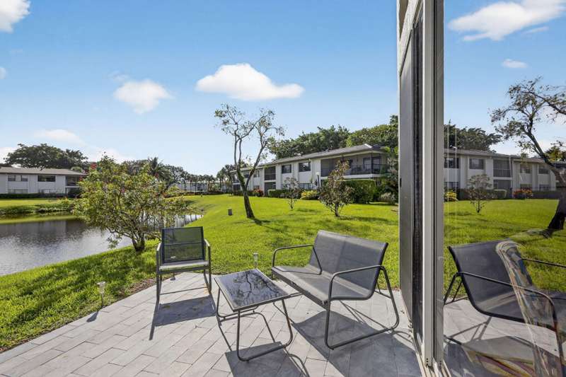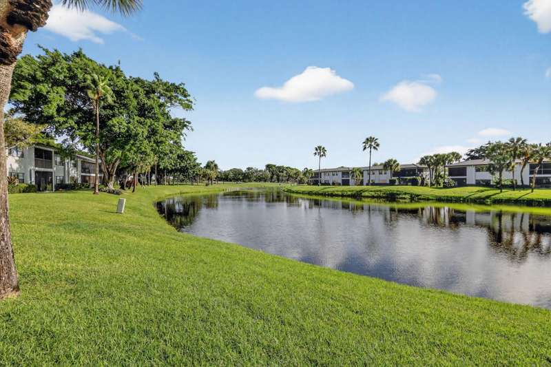 This beautifully redone two-bedroom, two-bath condo offers a perfect winter escape. The open-concept interior is completely updated with a modern kitchen and two luxurious baths.Step out onto the expansive patio to enjoy the stunning, panoramic views of the water and golf course. Its the ideal, peaceful setting to comfortably spend the winter months or all year round. Hunters Run is a mandatory buy-in and yearly membership, amenities-filled community, offering 3 championship 18-hole golf courses, tennis & pickle ball courts, 6 dining venues, pools, a fitness center, spa & salon, golf shop, entertainment & activities. Just minutes to vibrant downtown Delray and the BEACH! Come to Hunters run the only thing missing is you!
