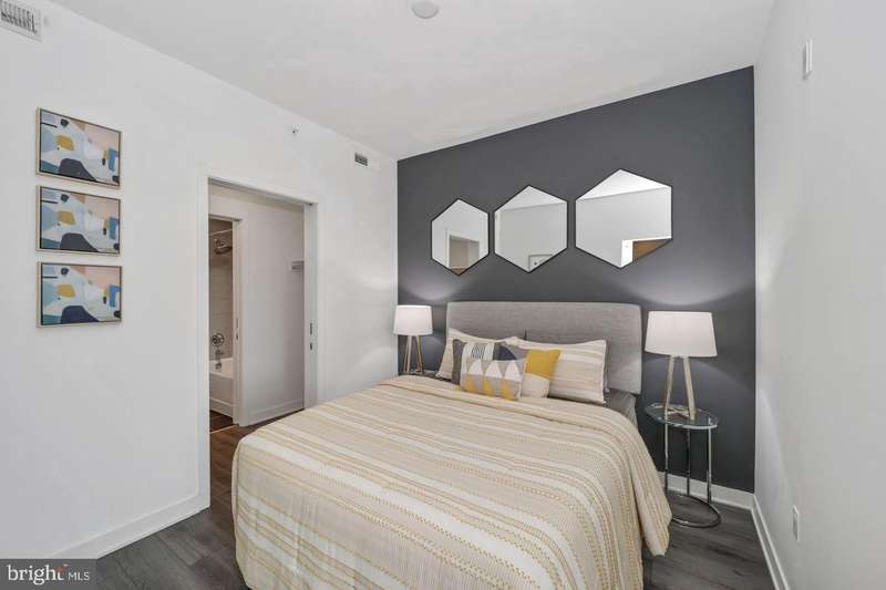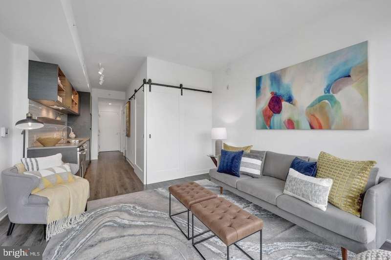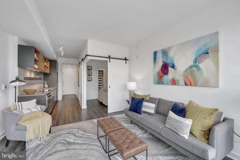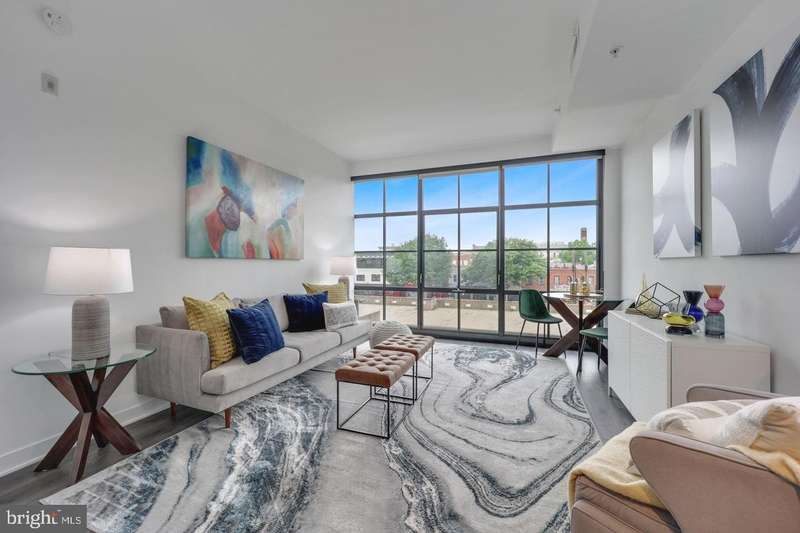 Located in the heart of DC's vibrant U Street and Shaw neighborhoods, this sleek and modern 1-bedroom, 1-bath residence offers upscale industrial design and an unbeatable lifestyle just seconds from Metro and some of the city's best restaurants and entertainment hot spots! Unit #310 has a thoughtfully designed layout, with wide-plank hardwood flooring, soaring ceilings, and floor-to-ceiling west-facing windows that flood the unit with natural light and offer stunning sunset views. The kitchen boasts quartz countertops, stainless steel appliances, custom cabinetry, open shelving, and a subway tile backsplash-perfect for those who love to cook and entertain. The open living/dining layout allows for flexible furniture arrangement. Two barn doors lead to a queen-sized bedroom with a walk-through closet, providing ensuite access to a stylish full bathroom with a floating vanity, designer tile, and shower/tub combo. Additional conveniences include in-unit washer/dryer, coat closet, and custom window treatments throughout. Residents of the building have access to the rooftop resident lounge with sweeping city views, rooftop fitness room, and an outdoor rooftop terrace with fire pit, dining areas, and lounge seating. Just one block to Whole Foods and steps to Landmark Cinema, 9:30 Club, Howard Theatre, Shaw Dog Park, and the U Street/Shaw Metro, this location offers the ultimate in urban convenience. Enjoy local green space at Maury Wills Field and Banneker Recreation Center, just around the corner too! Hurry, don't miss your opportunity to reside in this modern oasis in the city!