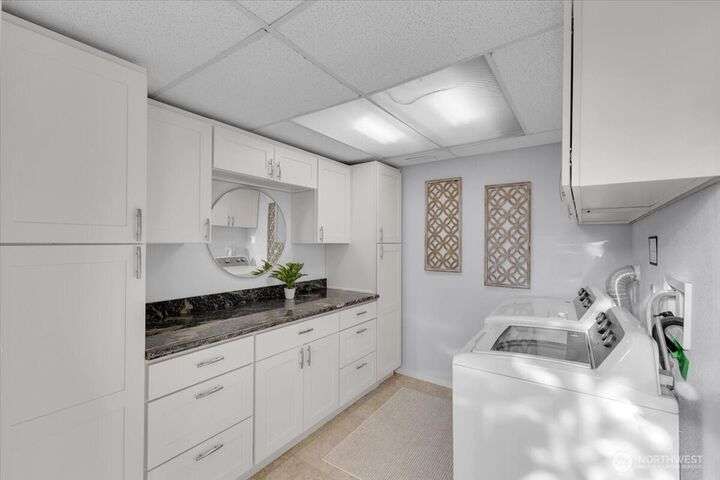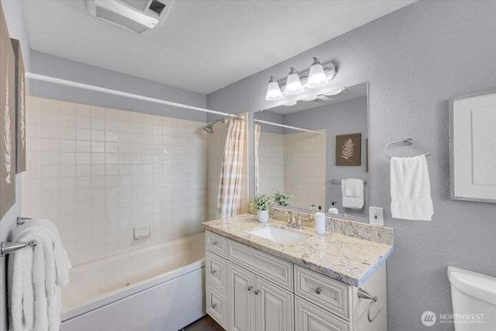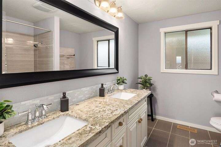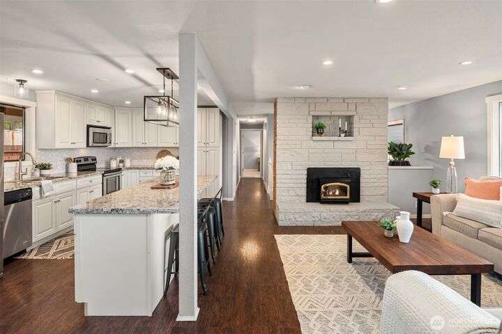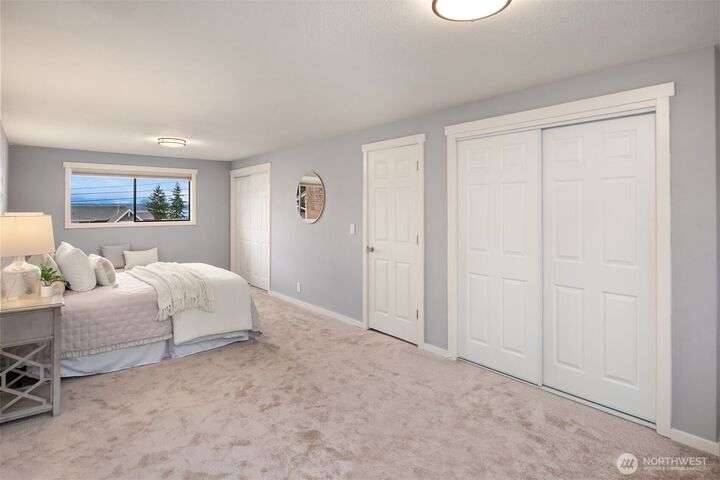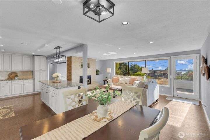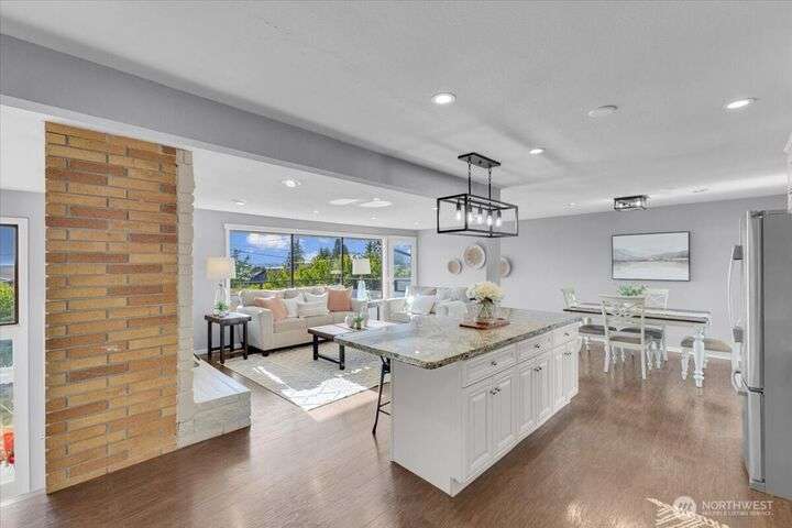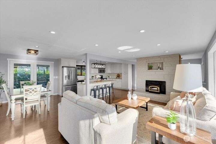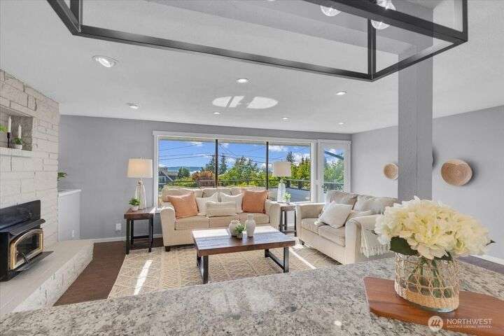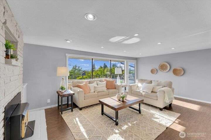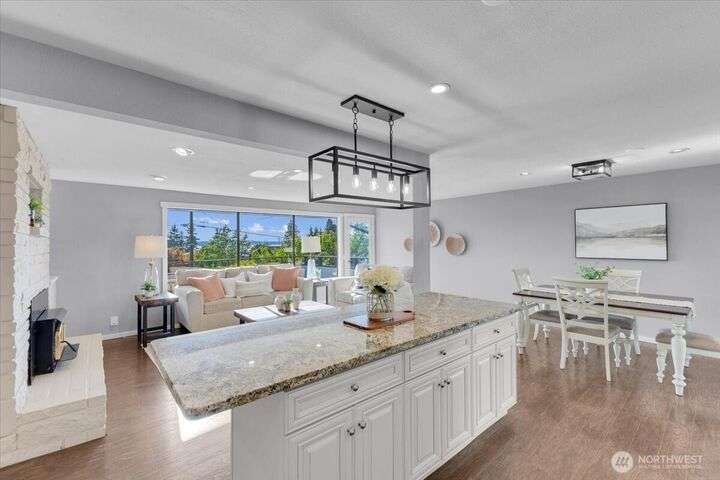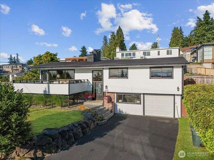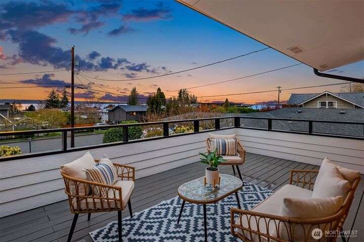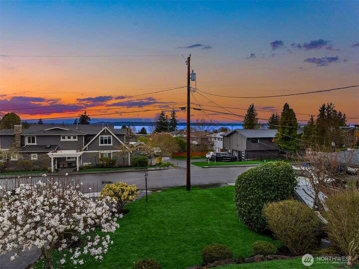 Enjoy coveted Edmonds Bowl living with gorgeous views of the Sound, Whidbey Island and the Olympics. Tucked away on a quiet, non-through street within blocks of scenic parks and downtown's booming restaurant & arts scene. This refined 3-bedroom + den home offers elegance and comfort. Entertain in style while soaking in golden sunsets and ferry views from the west-facing Trex deck. Chef’s kitchen features a large island & built-in pantry and flows seamlessly into bright, open living and dining areas. Oversized main-level primary with en-suite bath and dual closets. Bright lower level offers a family room, bedroom, office, ¾ bath & laundry and MIL potential. New roof, carpet + paint. Efficient heat pump w/AC + tankless gas water heater.