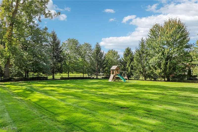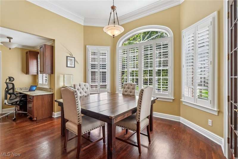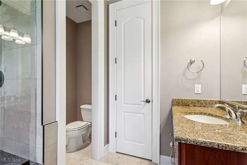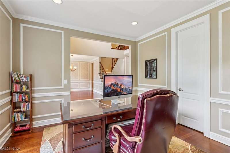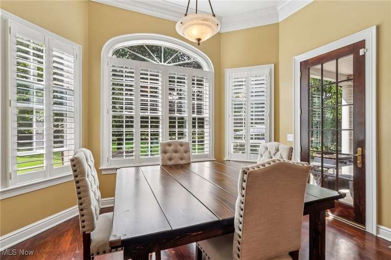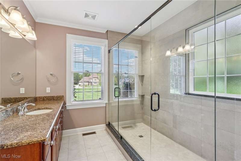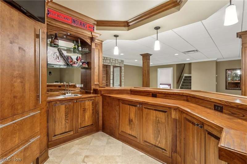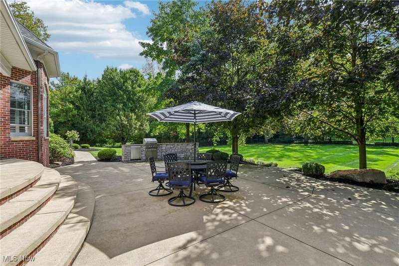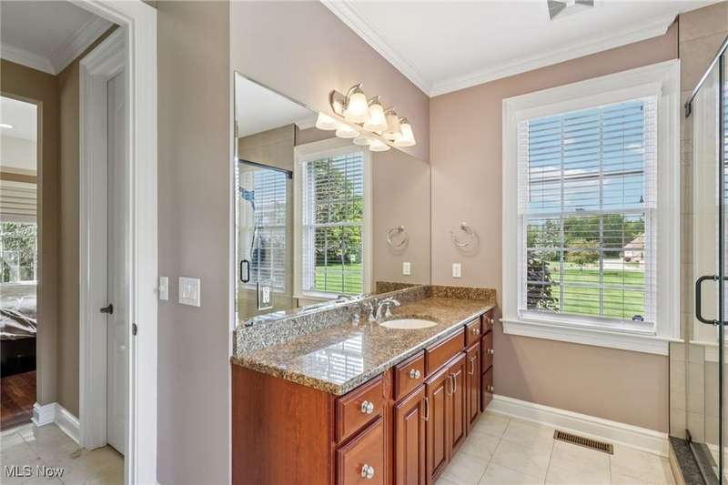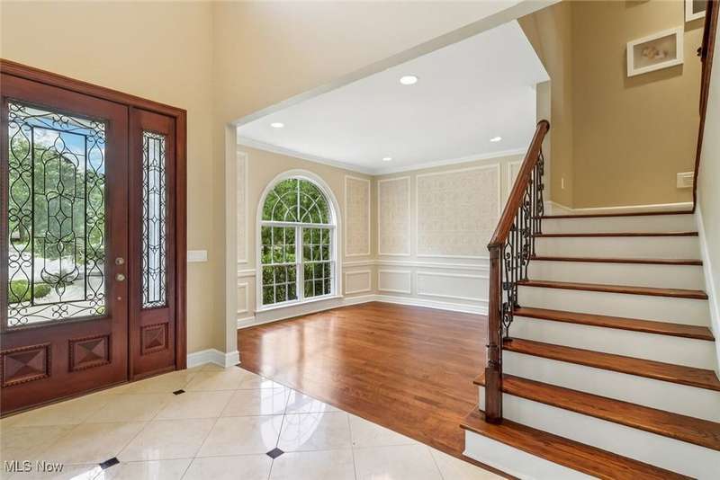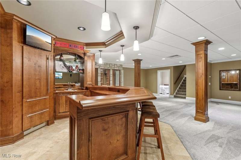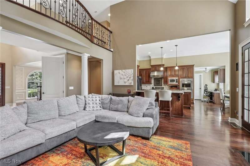Set back on a beautifully landscaped 1.4-acre homesite with a circular drive, this all-brick residence blends timeless elegance with modern updates throughout. Step inside the dramatic two-story foyer with marble floors and soaring ceilings. Flanking the entry are the formal dining room and office, each with hardwood floors, palladium windows, and classic wainscoting. At the heart of the home is a stunning two-story family room with hardwood floors, gas fireplace, and dual French doors to the covered veranda. The gourmet kitchen impresses with cherry cabinetry, granite counters, a center island with prep sink and beverage fridge, stainless steel appliances, double wall oven, gas cooktop, travertine backsplash, and crown molding. The adjoining morning room bathes the space in natural light and features plantation shutters and a French door to the backyard. A planning center and walk-in pantry add everyday functionality. The owner's suite is a serene retreat with gas fireplace, tray ceiling, his-and-her closets, and French door to the veranda. The updated spa-like bath boasts dual sinks, an oversized double shower, and linen closet. Upstairs, a Juliet balcony with wrought-iron railing overlooks the family room. Two bedrooms with walk-in closets and a large bonus room share a hall bath with dual sinks, separate shower, and linen closet. The lower level is designed for entertaining with a recreation room, gas fireplace, large bar, climate-controlled wine cellar, plus a bedroom, half bath, and workout room. Outdoor living includes a covered veranda, patio, fully fenced yard with wrought iron fencing, and irrigation system. Additional highlights: first floor laundry room, heated 3-car garage, two furnaces/AC (one replaced 2019), newer hot water tank (2020), updated primary bath, blinds, upstairs carpet, and full fencing. This home offers an ideal blend of sophistication, comfort, and updates?perfect for entertaining and everyday living.