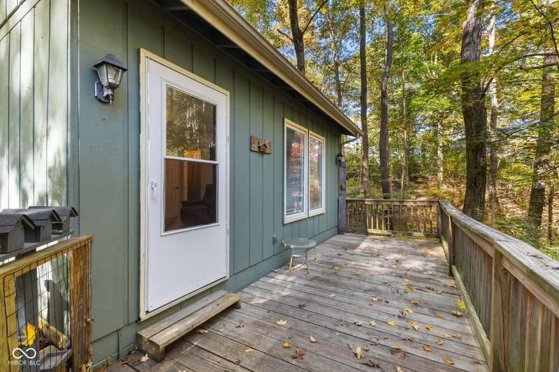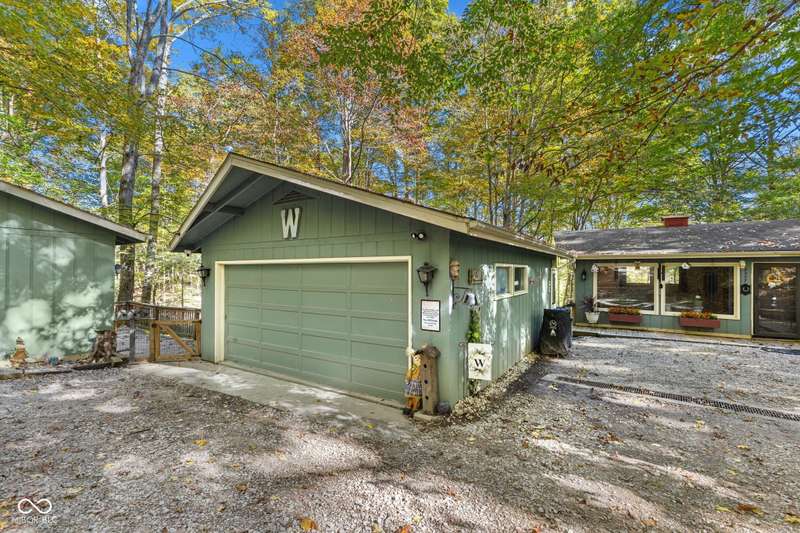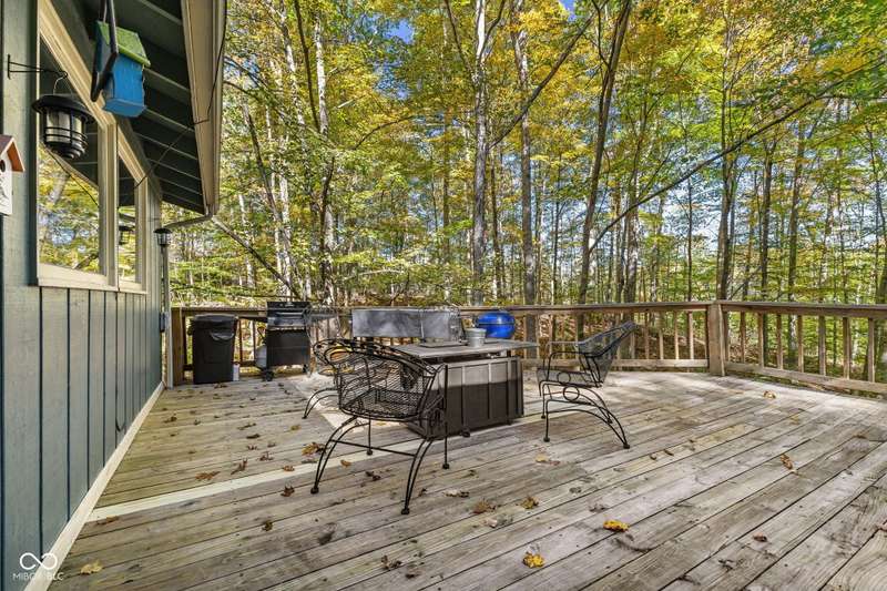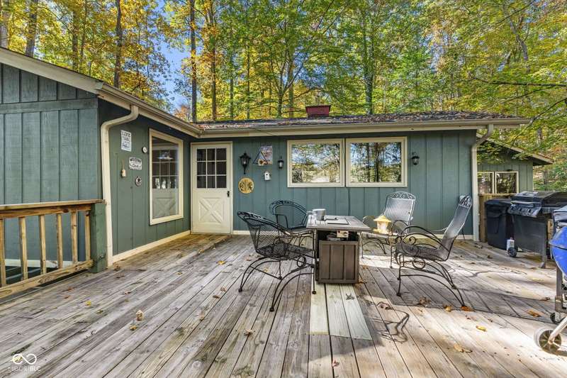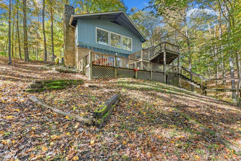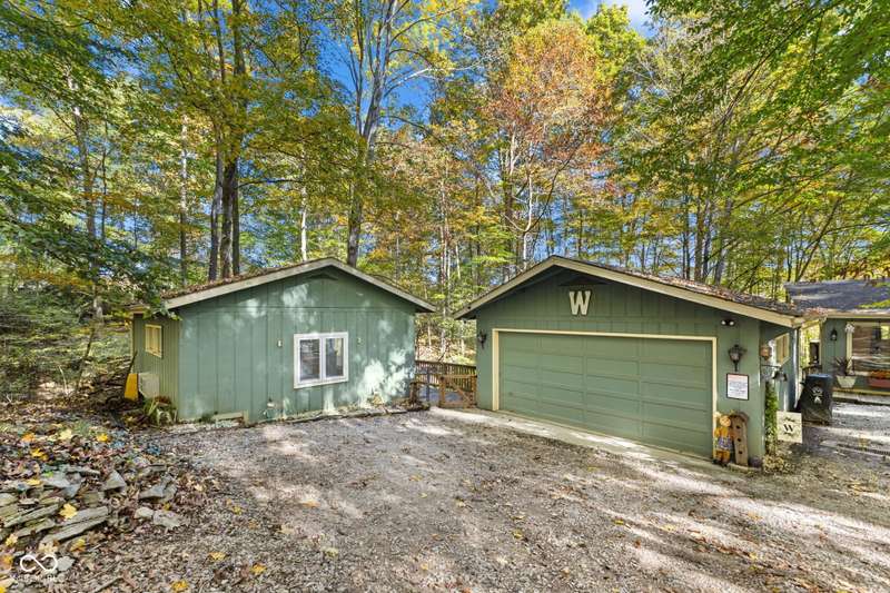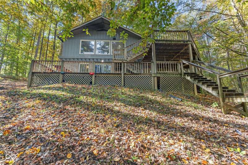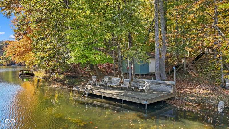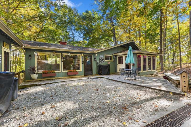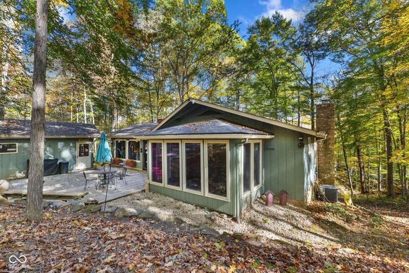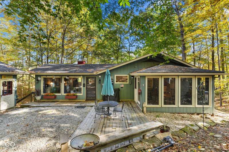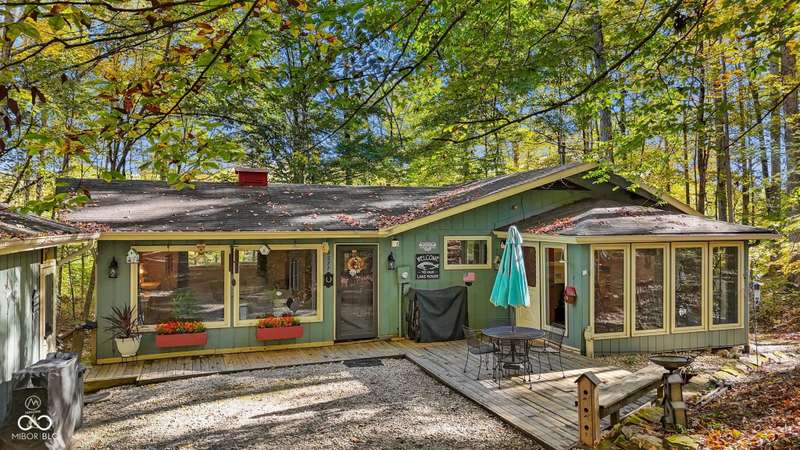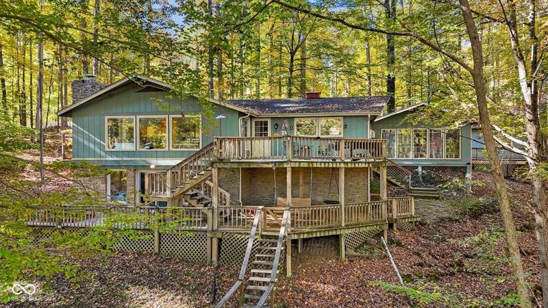 Discover this beautiful Lake LaSalle home nestled in the natural beauty of Brown County with a guest house-a perfect blend of relaxation, recreation, and rustic charm. This inviting 2-bedroom, 2-bath retreat sits on over 1.5 wooded acres teeming with wildlife and offers stunning lake views and peaceful surroundings. The spacious living room is filled with natural light from large windows, creating a warm and welcoming atmosphere. Adjacent is a cozy family room featuring a striking stone wood-burning fireplace-perfect for chilly evenings and gatherings with family and friends. The finished basement expands your living space, complete with a bonus room, exercise area, second bedroom, and full bathroom-ideal for guests or extended family. A bright sunroom overlooks the serene wooded lot, while the large deck provides an ideal spot for entertaining or simply taking in the tranquil lake views. A highlight of this property is the charming guest house, conveniently connected by the deck. It includes its own living area, kitchen, full bath, and washer/dryer-perfect for visitors, extra privacy, or potential rental income. Take a scenic walk down to your private dock and enjoy fishing, swimming, or a peaceful boat ride on Lake LaSalle, a 50-acre lake that allows boats up to 40 horsepower. This lakefront property truly captures the essence of Brown County living-where comfort, nature, and outdoor adventure come together in perfect harmony.