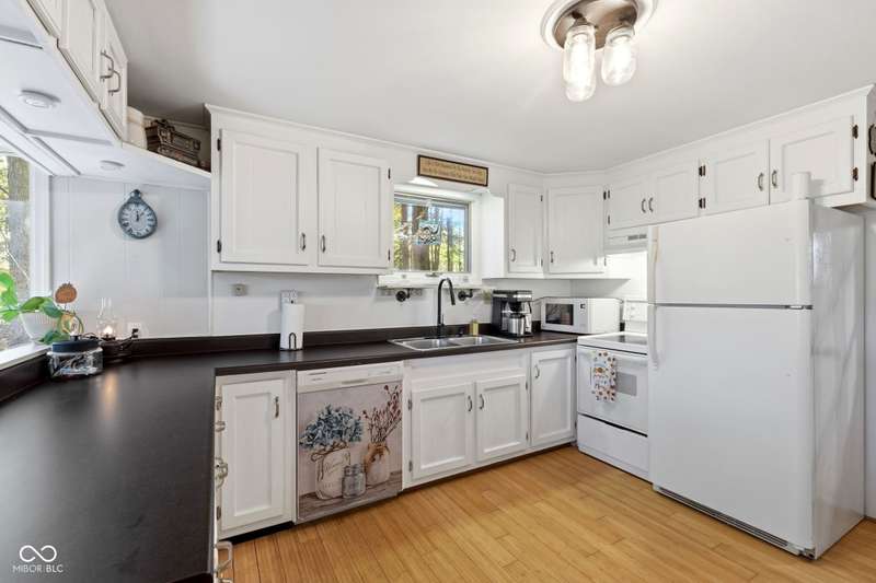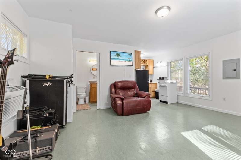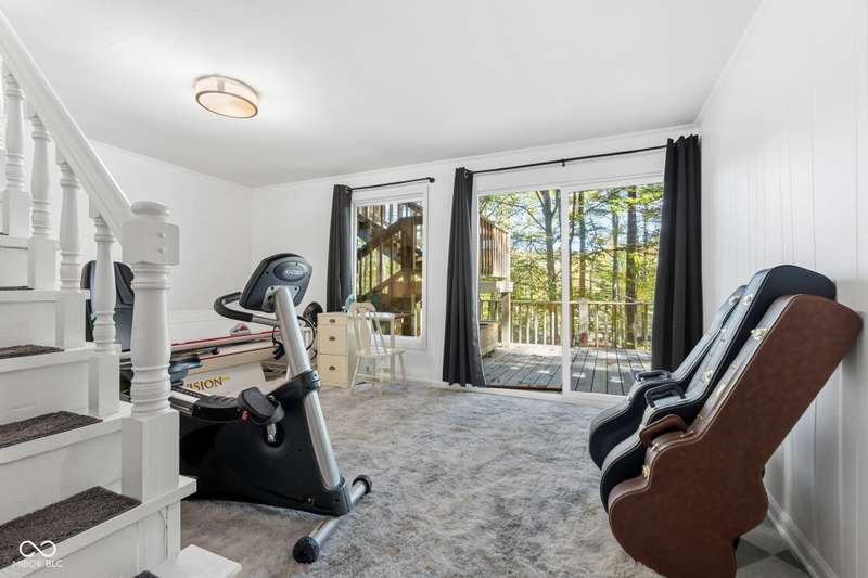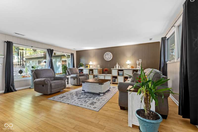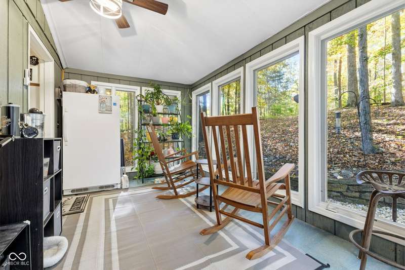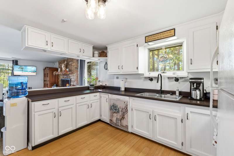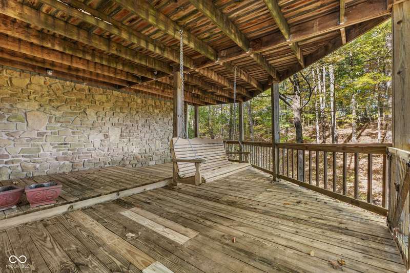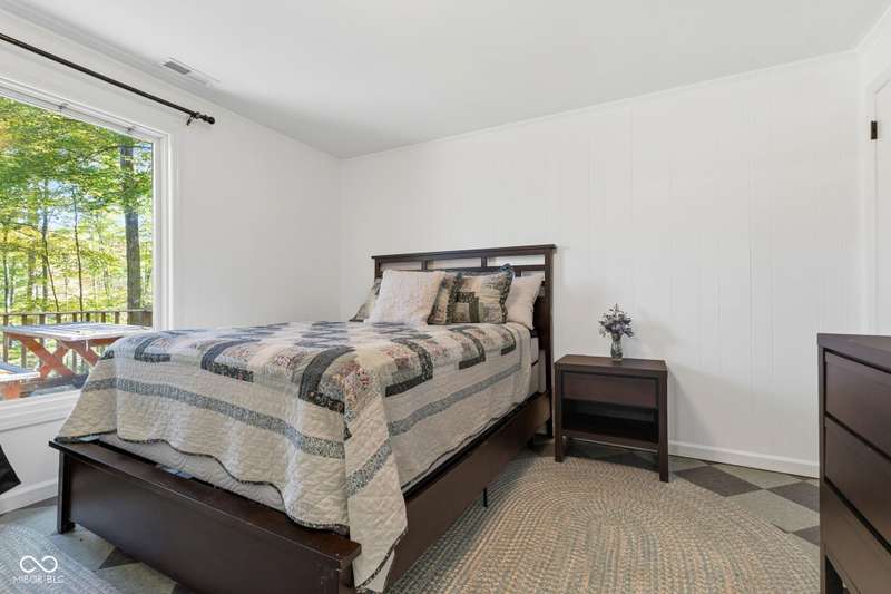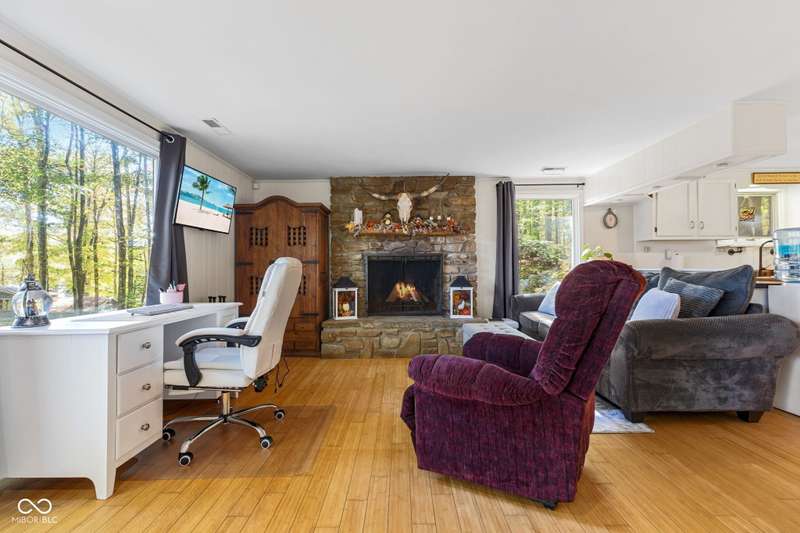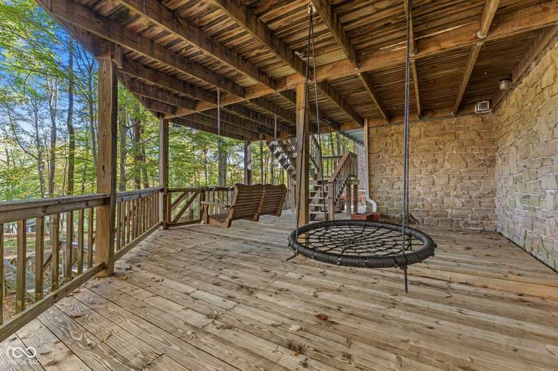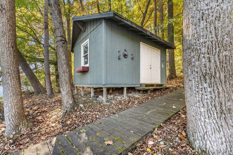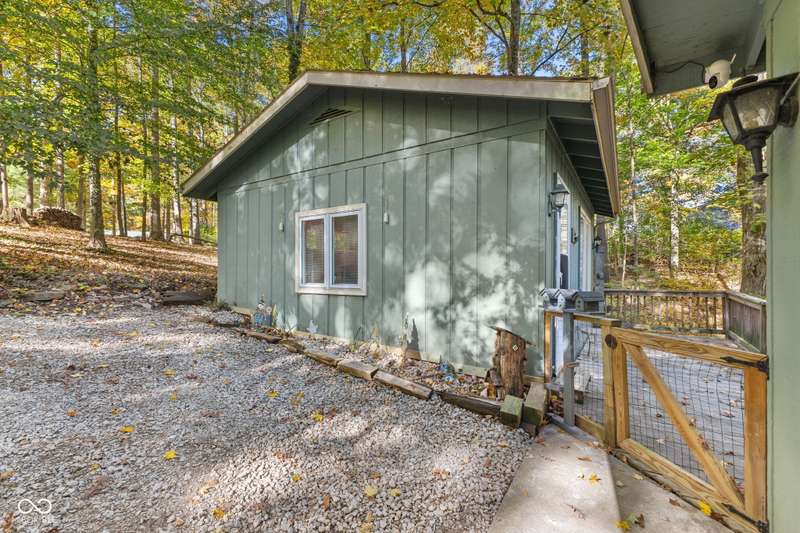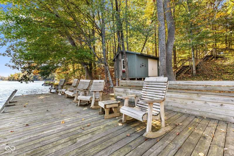 Discover this beautiful Lake LaSalle home nestled in the natural beauty of Brown County with a guest house-a perfect blend of relaxation, recreation, and rustic charm. This inviting 2-bedroom, 2-bath retreat sits on over 1.5 wooded acres teeming with wildlife and offers stunning lake views and peaceful surroundings. The spacious living room is filled with natural light from large windows, creating a warm and welcoming atmosphere. Adjacent is a cozy family room featuring a striking stone wood-burning fireplace-perfect for chilly evenings and gatherings with family and friends. The finished basement expands your living space, complete with a bonus room, exercise area, second bedroom, and full bathroom-ideal for guests or extended family. A bright sunroom overlooks the serene wooded lot, while the large deck provides an ideal spot for entertaining or simply taking in the tranquil lake views. A highlight of this property is the charming guest house, conveniently connected by the deck. It includes its own living area, kitchen, full bath, and washer/dryer-perfect for visitors, extra privacy, or potential rental income. Take a scenic walk down to your private dock and enjoy fishing, swimming, or a peaceful boat ride on Lake LaSalle, a 50-acre lake that allows boats up to 40 horsepower. This lakefront property truly captures the essence of Brown County living-where comfort, nature, and outdoor adventure come together in perfect harmony.