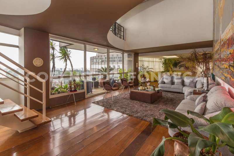 Lindíssima cobertura assinada por arquiteto. Espaços diferenciados e amplos. Escada central com designer, quatro amplas suítes, home theater com revestimento acústico e churrasqueira com espaço gourmet integrado com salas superiores. Prédio com projeto assinado por arquiteto da equipe de Oscar Niemayer.