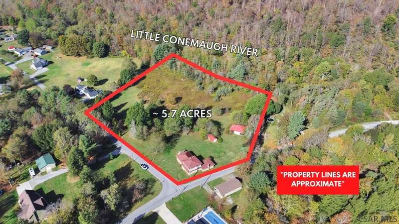 Welcome to 104 Twin Lakes Road, a one-of-a-kind opportunity in the Portage School District. Nestled on approximately 5.7 flat, scenic acres w/ river frontage along the peaceful Little Conemaugh River, this property offers endless potential. The stately home has been fully cleared out & is ready for your vision - an ideal blank canvas to create your dream residence. The main level offers a spacious foyer, a light-filled living room w/ a wood-burning fireplace, a dining room w/ access to a side patio, an open kitchen area, utility & laundry room, a half bath, a bonus office, & a large family room perfect for entertaining. Upstairs, you'll find three nicely sized bedrooms & a full bathroom. Outside, enjoy an attached two-car garage, a large detached garage, a generous shed, & expansive land w/ river views - perfect for relaxation or recreation! With its combination of natural beauty, privacy, & renovation potential, 104 Twin Lakes Road is a rare find. Cash or Renovation loans ONLY! AS-IS.