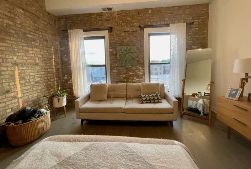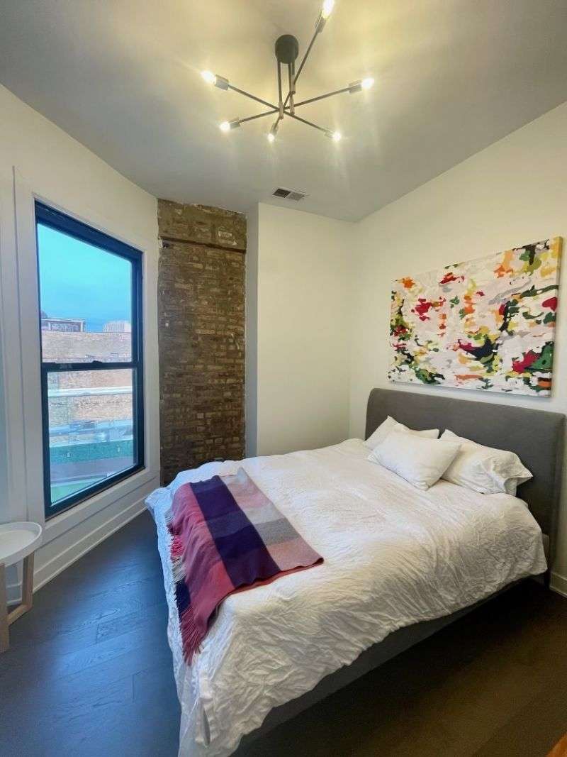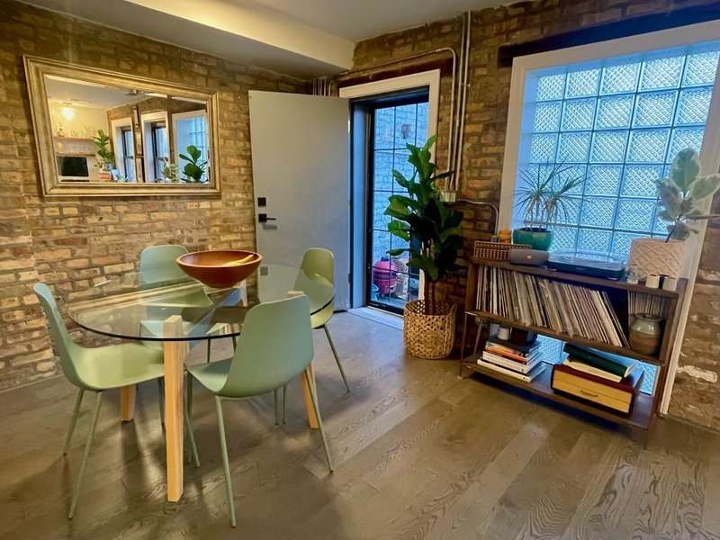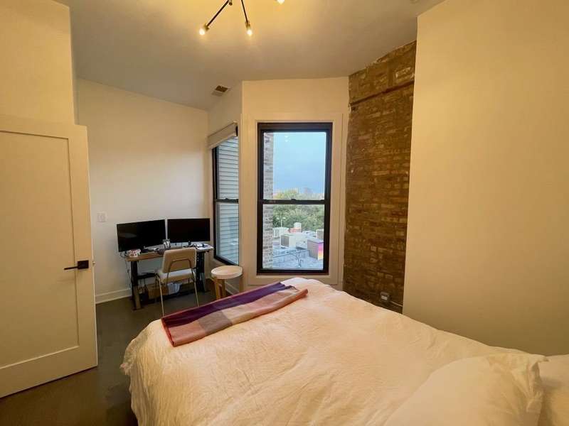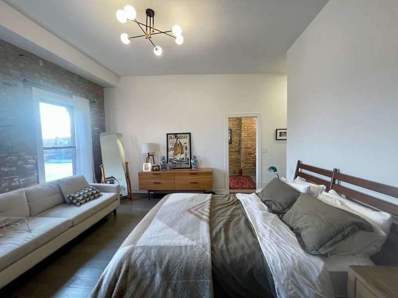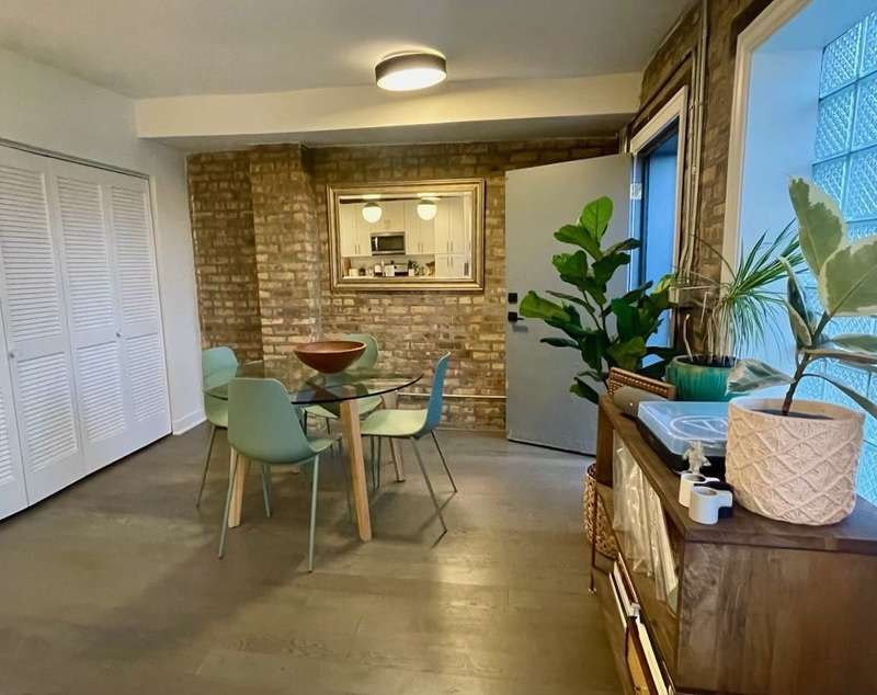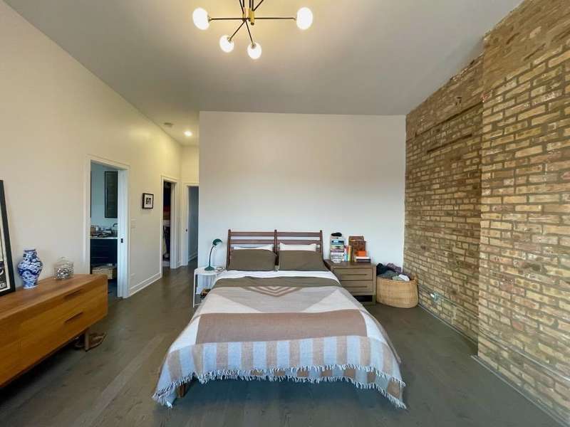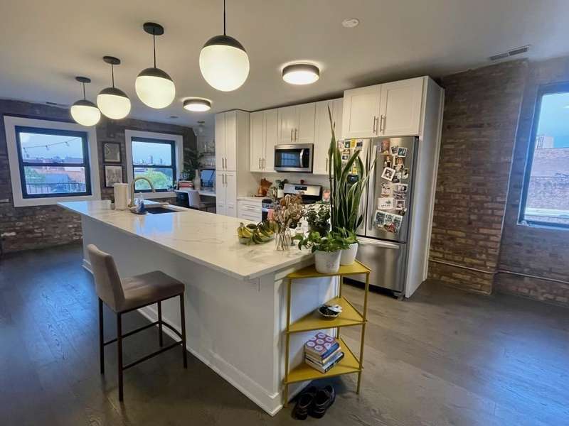 This stunning 2-bedroom, 2-bathroom top-floor home offers a rare chance to live in the heart of lively Wicker Park. Nestled between the Division and North Blue Line stops, it's packed with character and contemporary comforts soaring ceilings, exposed brick, Nest thermostat, smart locks, and in-unit laundry. Flooded with natural light, the open living space features a massive picture window framing unobstructed views of the Downtown Chicago skyline. The kitchen is equally captivating, equipped with stainless steel appliances, a dual-zone wine fridge, and a reclaimed wood bar for casual entertaining. The southeast-facing primary suite delivers scenic views down Milwaukee Ave, a generous walk-in closet with exposed brick, and a luxurious en-suite bath. You'll find an extra-large steam shower with dual heads, penny-tiled flooring, and a mahogany double vanity.