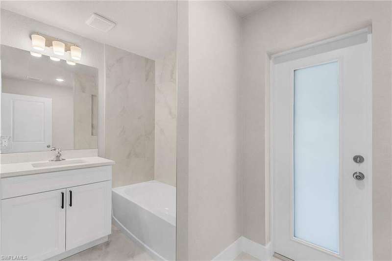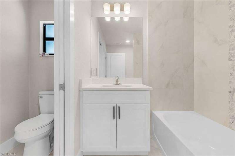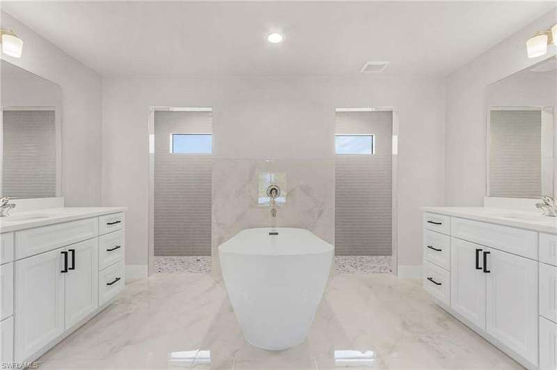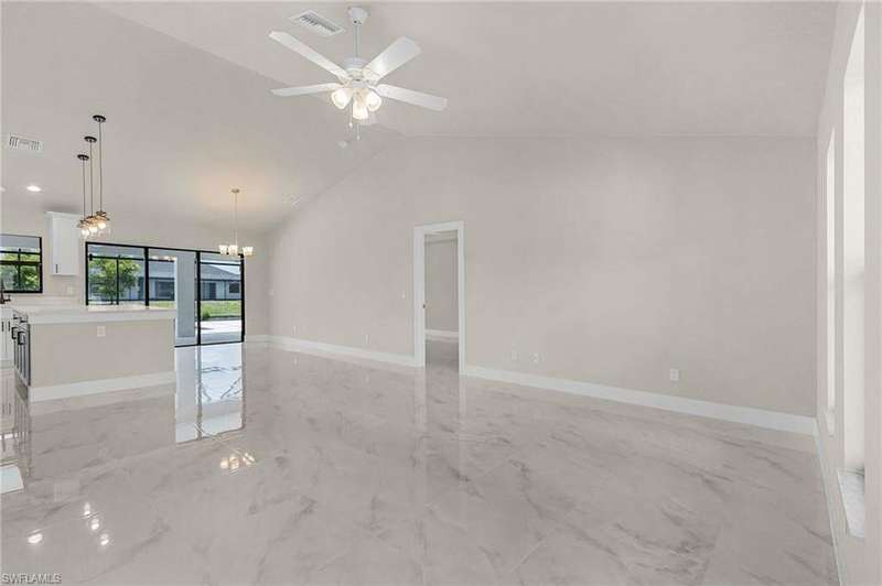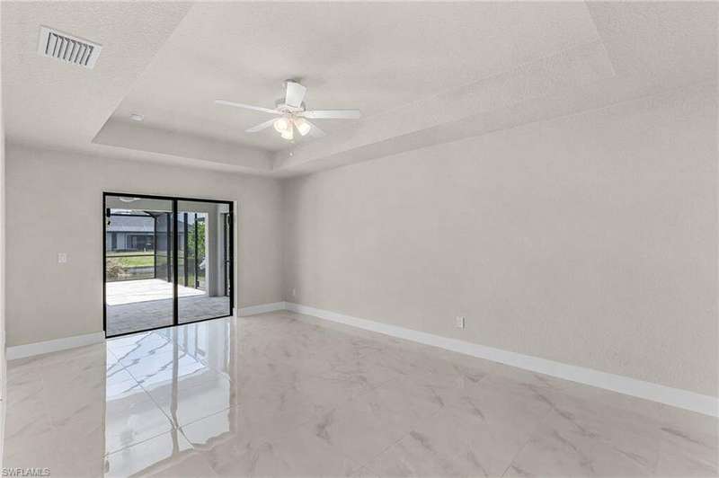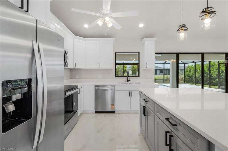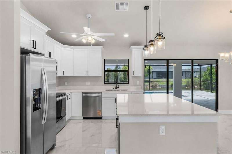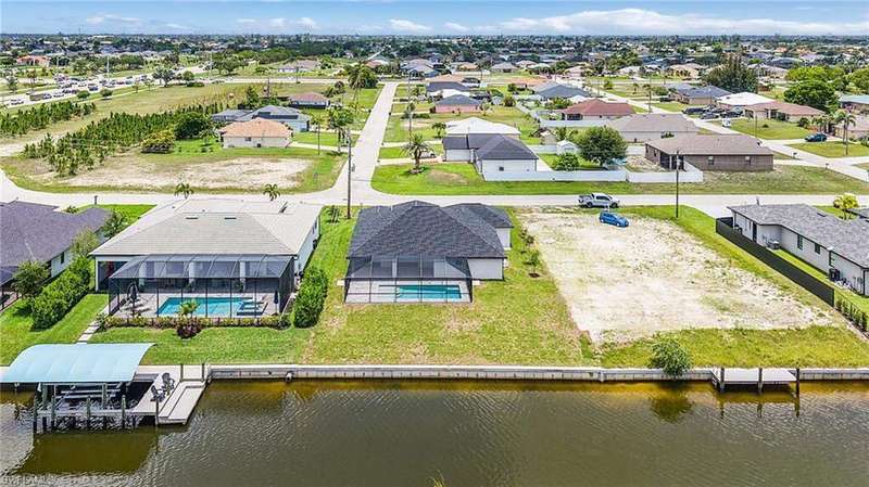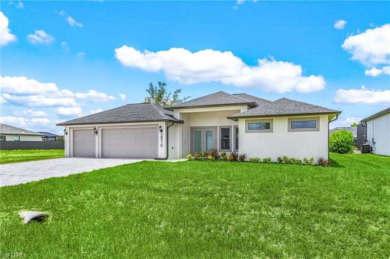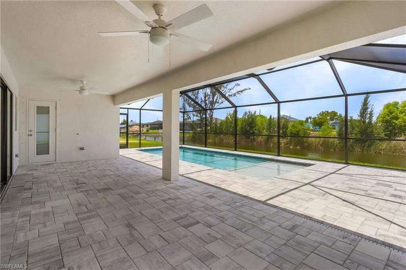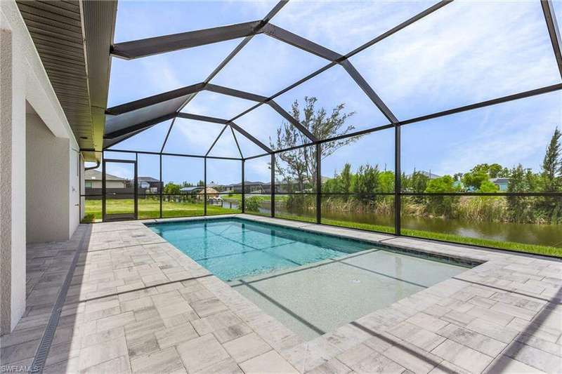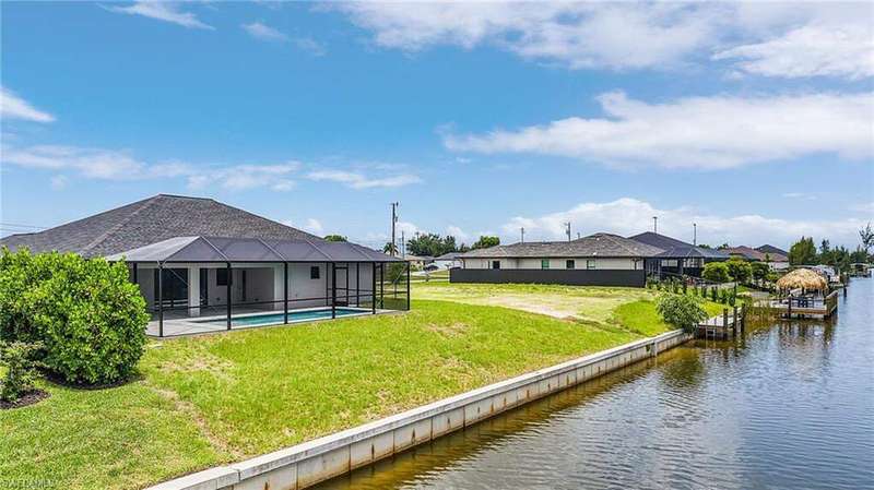 Not in a Flood Zone - Enjoy Peace of Mind and Long-Term Insurance Savings! This brand-new Gulf access pool home offers everything today's buyer is looking for: a new seawall already in place. Western rear exposure for stunning sunsets, and high elevation construction, along with being outside the flood zone. With the Certificate of Occupancy just issued, this never-lived-in property is truly turnkey and seller will pay off the city water and sewer assessments at closing for additional savings and transferable builder warranty ! Featuring 1,887 sq. ft. of modern living space, the home includes 4 bedrooms and 2 full bathrooms, with one serving as a dedicated pool bath for seamless indoor-outdoor living. The expansive under-truss lanai opens to a resort-style pool with sun shelf, bubbler and out door shower, all surrounded by tropical landscaping and wide canal views. Inside, you'll find high ceilings, upgraded tile throughout, and an open-concept layout that flows effortlessly. The chef's kitchen is a showstopper, offering quartz countertops, soft-close cabinetry, and a full suite of brand-new stainless steel appliances. The primary suite delivers spa-like luxury with a car-wash-style walk-through shower featuring dual shower heads. Additional highlights: 3-car garage with showroom-grade epoxy floors-ideal for car lovers, New seawall in place - a major expense and timeline already handled, No flood insurance required, offering significant annual savings. Prime SW Cape Coral location just minutes to Cape Harbour, dining, shopping, and schools and on a quiet street near cul-de-sac and no thru traffic. This is a rare opportunity to own a high-quality, move-in-ready Gulf access home with luxury features and practical benefits that set it apart from the rest. Easy to show, schedule your private tour today!