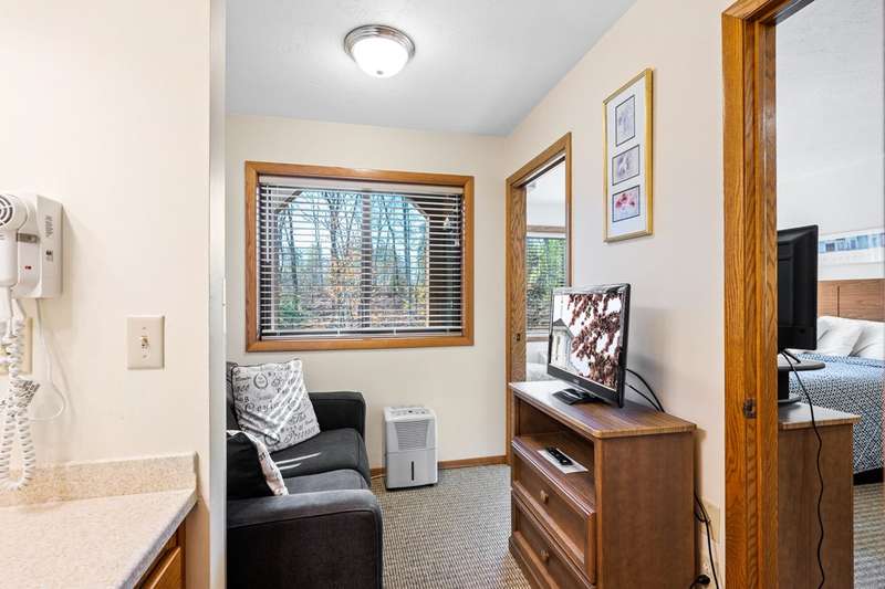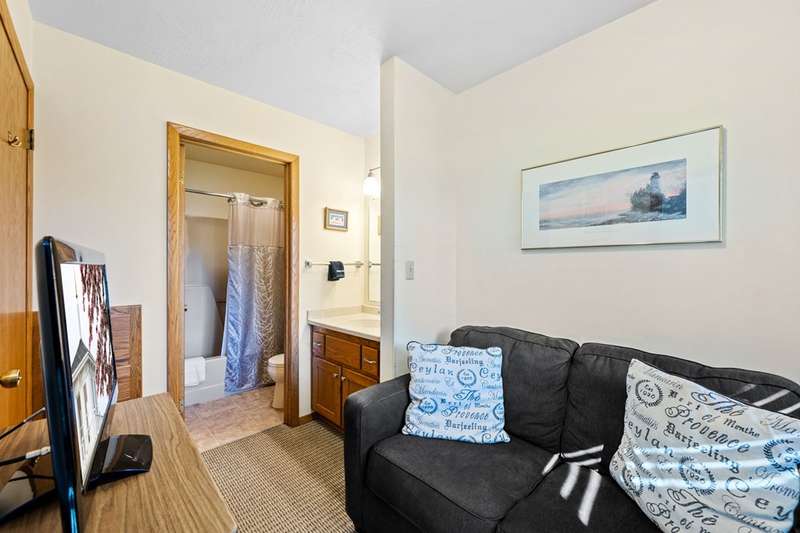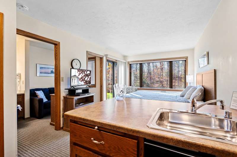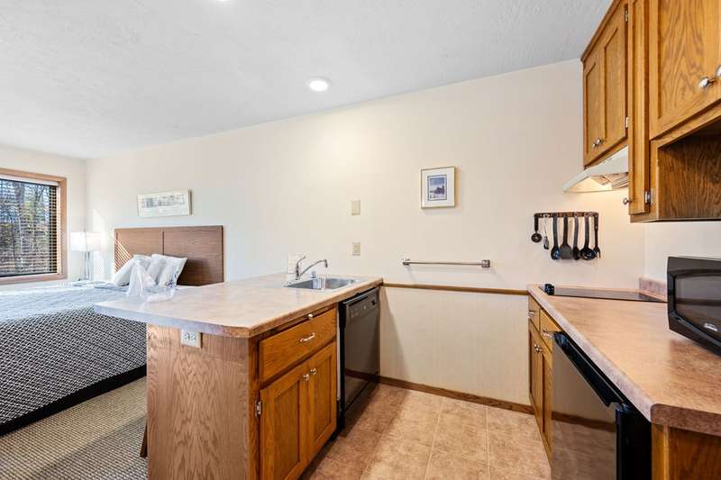 First-Floor Harbor Unit - This fully updated unit offers comfort and convenience with a king bed in the main area, a cozy alcove sitting area with loveseat, a full bath, and a well-appointed kitchenette with counter bar dining. Step out to your private covered patio, where you can relax and enjoy the serene view with direct access to a small outdoor space. Owners enjoy up to 28 days of personal use per year, while benefiting from strong rental income potential.