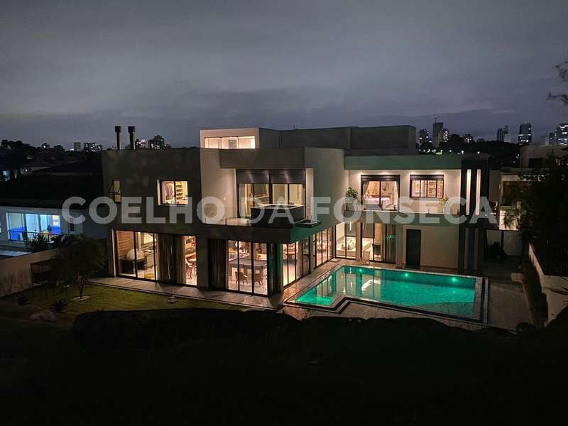 maravilhoso Imóvel Tamboré II, com Área de terreno 832,28 sem contar com a área não edificante Área construída 826,00 sem contar com a parte do Rof top que tem aproximadamente 200 m2 A casa tem aproximadamente 1.100 de área construída. Rof top com 200 m2, lá temos um escritório, um lavabo, uma copa, uma sala de massagem, Caixa da água de 5 mil litros Pressurizador 2 aquecedores a gás 5 suítes todas com closets e varandas Suíte 1 no térreo de frente com armários, ar condicionado, com portas de alumínio com venezianas blackout Suíte 2 no primeiro andar com closet de frente, com sacada ar condicionado, brise, portas de alumínio com veneziana blackout Suíte 3 com closets, ar condicionado, varanda, portas de alumínio com veneziana blackout Suíte 4 com closet, ar condicionado, varanda portas de alumínio com veneziana blackout Suíte 5 suíte master Suíte com closet masculino e wc masculino, wc masculino com sauna Closet feminino com wc feminino Espelhos com desembaçadora Varanda com jacuzzi aquecida Piscina com jacuzzi aquecida Lavabo da piscina Ducha Fogo de chão e bancos Sala de cinema com tela de 180 polegadas, poltronas reclináveis elétricas de couro Sala de almoço Sala de jantar Cozinha do dia a dia Espaço gourmet com forno e churrasqueira Ilha Ar condicionados Elevador para 8 pessoas Otis Automação controlada pelo celular e Alexia Adega de vinhos e sala de vinhos Garagem pra 8 carros Casa de máquinas da piscina Oficina