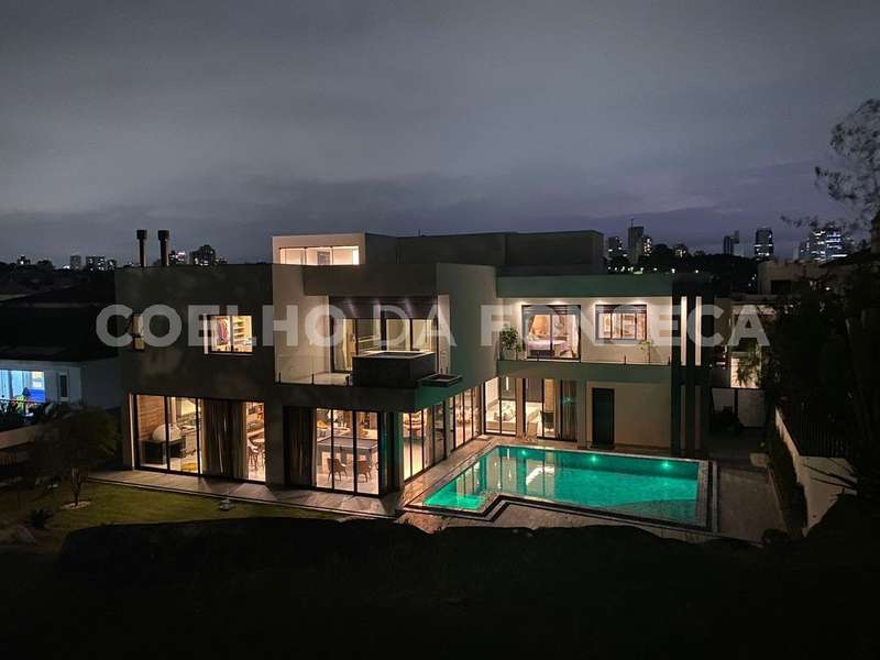 Casa no condomínio TAMBORÉ II, com 541m² área construída, 5 dormitório(s), 5 suíte(s), 8 vaga(s), 9 banheiro(s), piscina, escritório, sauna, mobiliado (a), ar condicionado, dep. de empregados, varanda, elevador, aquecedor solar, pé direito duplo.