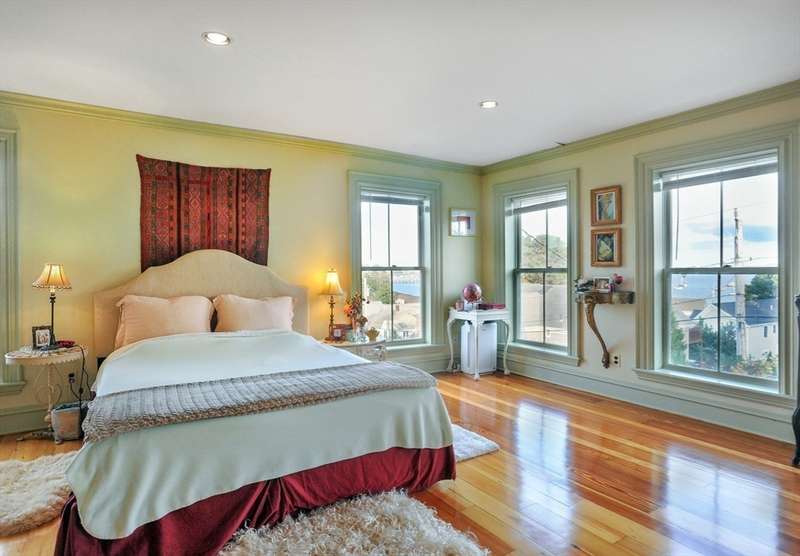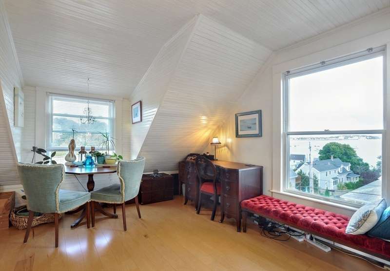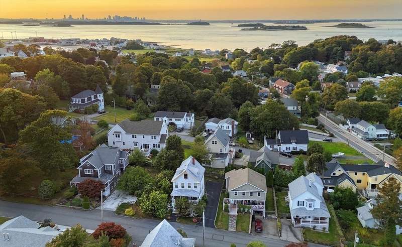 Welcome to this exceptional home in historic Hull Village! Enjoy captivating water views from every room including the expansive covered front porch, perfect for relaxing or entertaining. Every detail speaks to quality and character, blending historic charm with thoughtful updates. Inside, the elegant marble entryway and grand staircase with newel post light and chandelier leads to a living room with French doors, custom moldings, built-in cabinetry, a marble fireplace, and recessed lighting. The kitchen features stainless-steel appliances and a breakfast bar opening seamlessly to the dining room with a hidden pantry. Radiant-heated hardwood floors grace the first and second levels. On the second floor, the spacious primary suite offers a serene retreat with a walk-in closet, alongside another comfortable bedroom. The third floor provides a versatile space -a huge bedroom, office, or media room. All outside of the floodplain, just steps from a private beach and the commuter boat.
