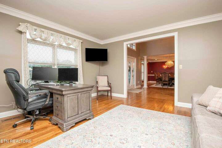 Discover the perfect blend of sophistication and comfort in this stately all-brick, two-story home set on a prominent corner lot in one of Knoxville's most desirable neighborhoods. Thoughtfully designed with five spacious bedrooms-including two on the main level. This home offers the flexibility to suit your lifestyle. Warmth and charm fill every room, from the two elegant fireplaces to the sunroom retreat off the primary suite, where sunlight dances through the windows and mornings feel more peaceful. Separate formal dining room. Large kitchen with a separate area for eating, looking into family room leading out to an expansive concrete patio sets the stage for memorable gatherings. Immediately off the patio is a serene pond. Three-car garage provides generous storage and parking. Every detail is crafted for both style and function, making this residence more than just a house-it's a place to truly live. Call us to view this home.