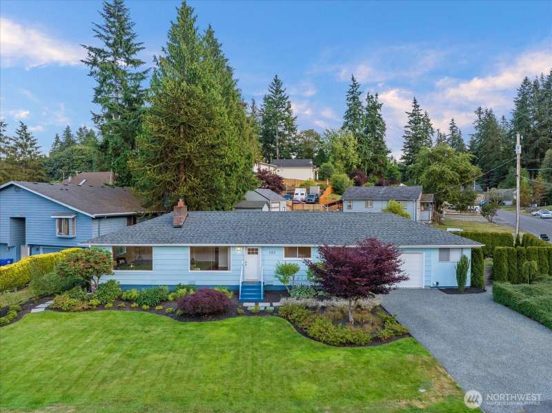 Conveniently Located 3 Bd Rambler + Detached Office Building, Garage, Workshop & Storage! Classic Character and Modern Function. Spacious Walk-Thru Mudroom/Coat Room & LVP flooring. Bright Living Spaces, Picture Windows & a Brick Fireplace. Kitchen w SS Appliances + Pantry Closet Opens to Dining Space & Flows to 2nd Living Room! Major Upgrades Throughout, New Roof (2025) & Pre Inspected -Offering Peace of Mind for Years to Come. New Backyard Home Office w Heat & A/C—Ideal Space for Remote Work. Garage PLUS Workshop Space & Hobby/Craft Room Or Bring Your Ideas! Enjoy Mature Landscaping, Stone Patio & Sprinkler System. Easy to Boeing, Shopping, Schools, I-5, The Everett Waterfront, Restaurants, Beaches, Marina, Forest Park & More.