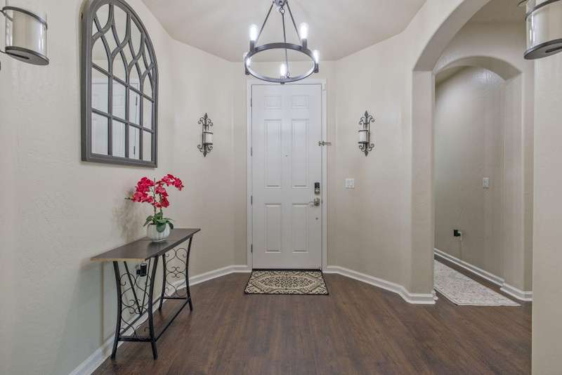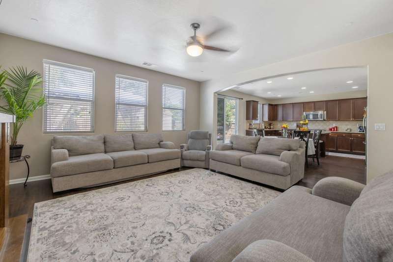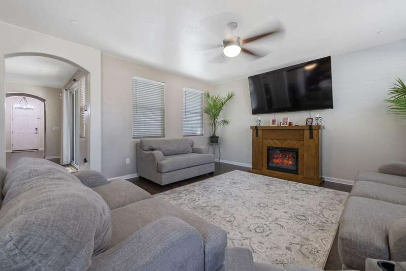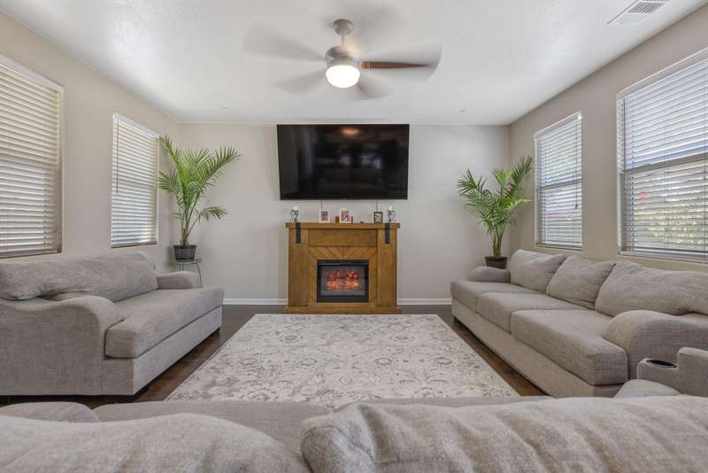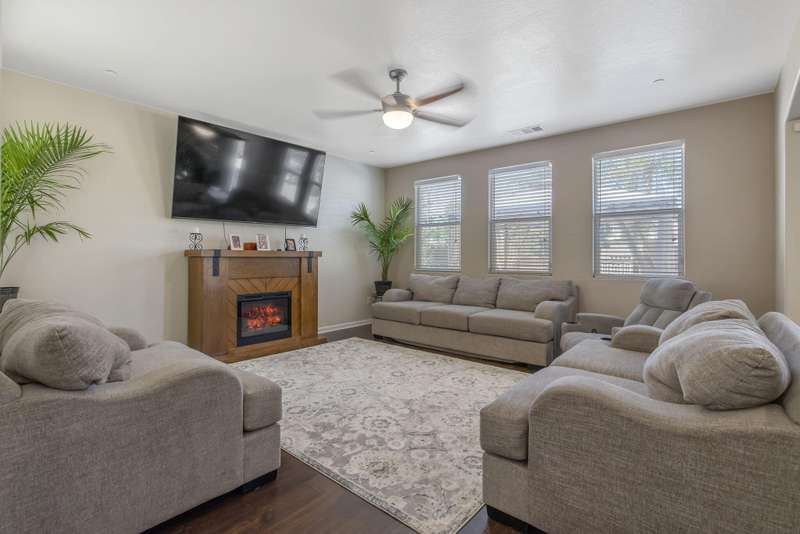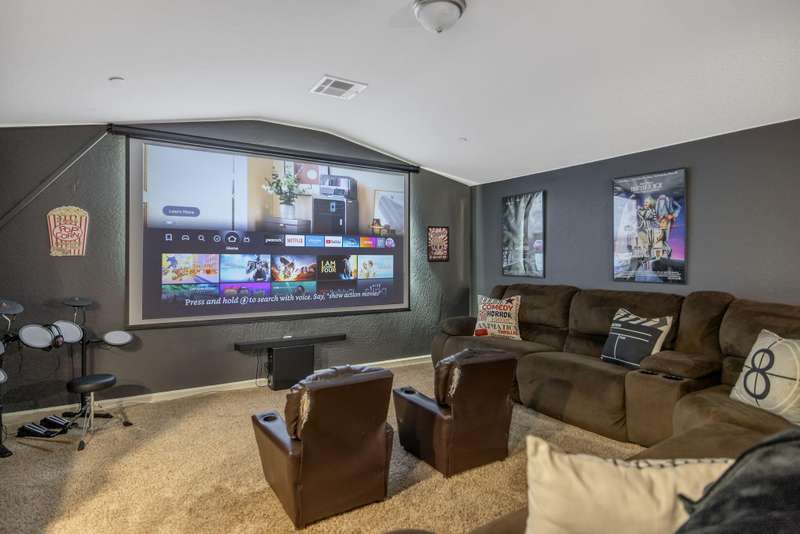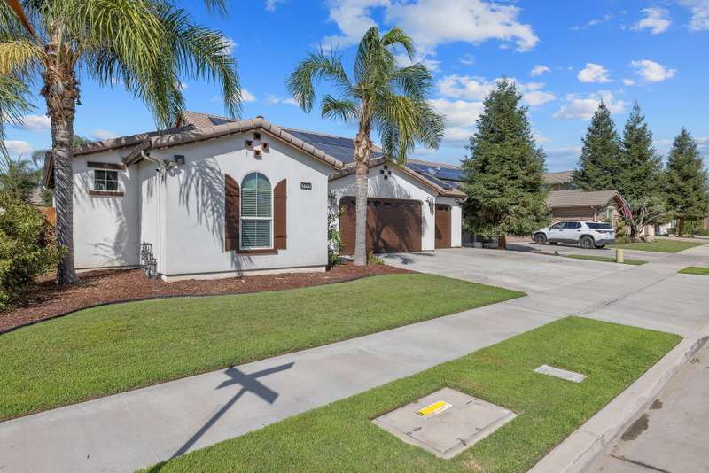 Nearly 3,000 sqft of Spanish-style elegance with Smart Home features in Northwest Visalia featuring 5 beds, 4 baths and OWNED SOLAR with little to no electric bill! Set on a generous corner lot with striking custom cement work front and back. The first floor shines with engineered flooring, a split layout & gourmet kitchen with granite counters & stainless steel appliances. Upstairs, enjoy a private bedroom & full bath plus a large loft complete with a jaw dropping MOVIE THEATER! This beautifully upgraded home is designed for modern living featuring fully equipped smart-home features throughout. Enjoy the convenience of a smart lock on both the main entry and garage door, a smart thermostat for effortless climate control, and a smart garage system that offers security and ease at your fingertips. Outside, expansive outdoor living awaits with fruit trees, garden areas, a separate private terrace & side yard. This amazing home also Includes a water heater-and a 3-car garage. A rare blend of style, space & efficiency in a highly desirable location. Schedule your showing today!