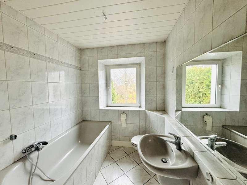 An apartment building built in 1850 is for sale. This building offers a generous living space of approx. 240 m² on a plot of approx. 694 m². The property is in need of renovation, so new owners have the opportunity to add their personal touch. The house has already been completed and was last modernized in 2000. As part of the modernization measures, the windows, electrics and heating system were renewed between 1997 and 2000 and a moisture barrier was installed. These measures provide a solid basis for future renovation projects and the apartment building is currently divided into three residential units. There is a spacious 1-room apartment on the first floor, which is directly accessible from the garden. However, this apartment can easily be connected to the second floor via an internal staircase if desired. There are two further residential units on the second floor. The left-hand apartment extends as a maisonette over the first and second floors and has cozy sloping ceilings. To the right is a practical 2-room apartment. Storage cupboards are available in all living areas, providing additional storage space, and the property has various heating options: a small, modern tiled stove, a cannon stove and a permanent wood-burning stove. In addition, a gas central heating system provides flexible heating options. The floor is laid with a mixture of wooden floorboards, tiles and stone, while modern plastic windows ensure good insulation. A special highlight is the garden with terrace, which invites you to relax outdoors. The property also offers the opportunity to create parking spaces. The property has a partial basement; one section of the cellar is accessible almost at ground level. The basement is currently half filled with rubble and offers potential for further use, and all four bathrooms in the property are fitted with windows, which ensures good ventilation. Modern communication technology is ensured by an existing DSL and satellite connection.This apartment building is ideal for investors or multi-generational families who are willing to carry out necessary renovations to realize the full potential of this property. With its flexible floor plan and good infrastructure, this property offers an interesting living and investment opportunity. We cordially invite you to take a look at this multi-faceted house and be inspired by its possibilities.