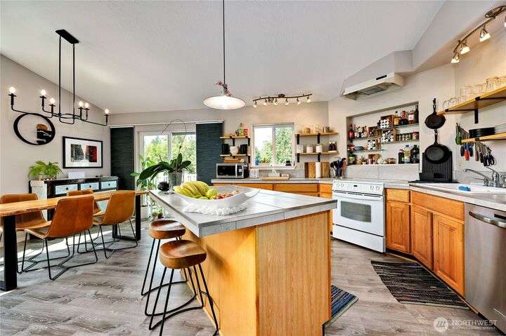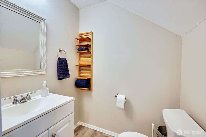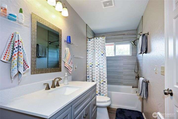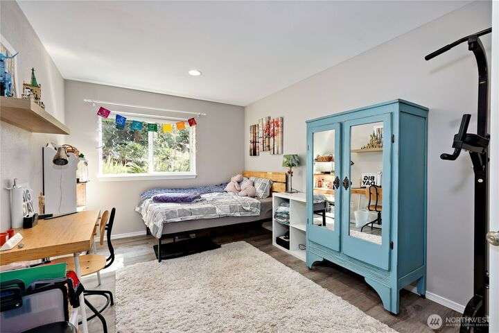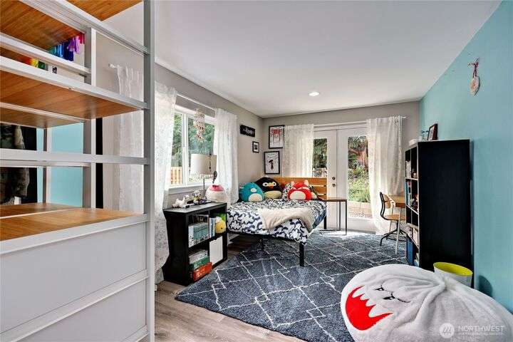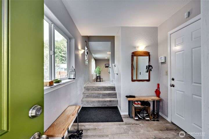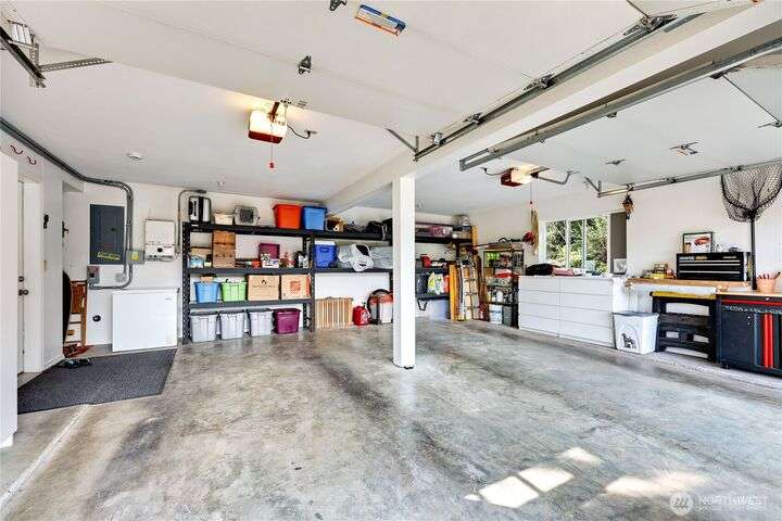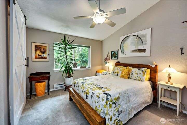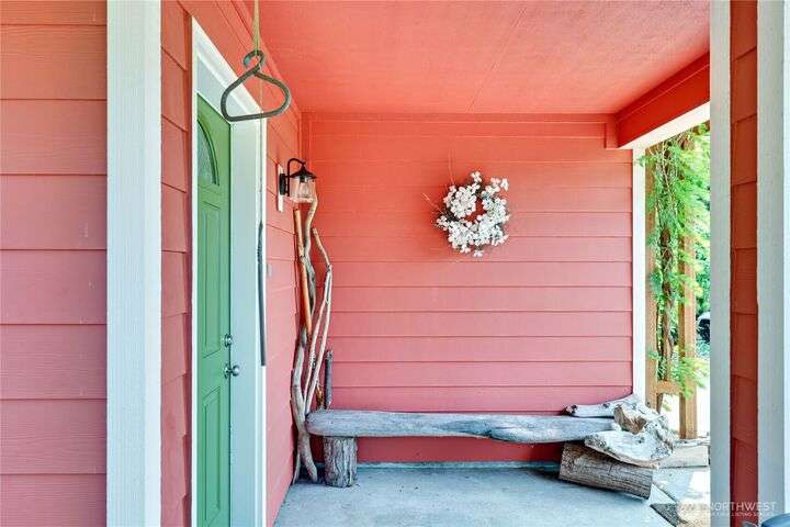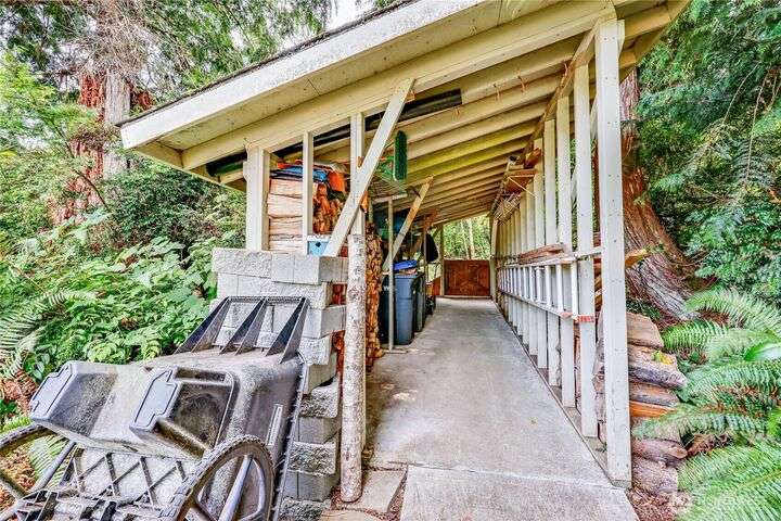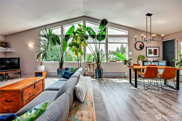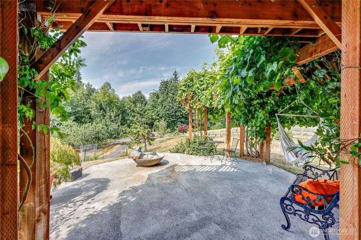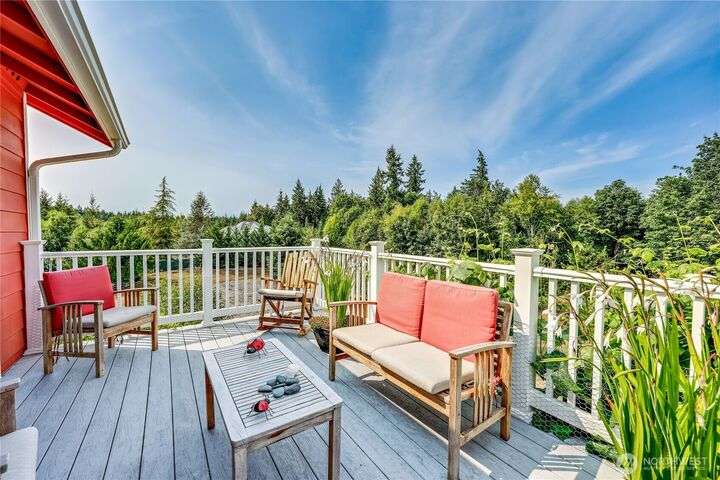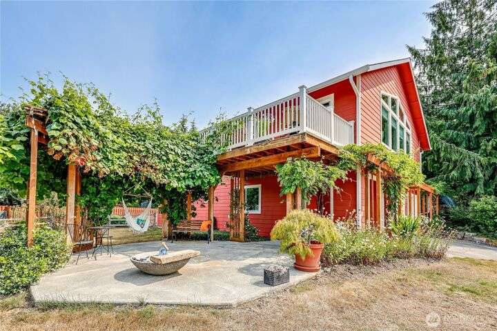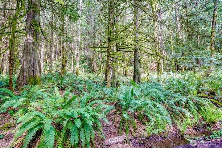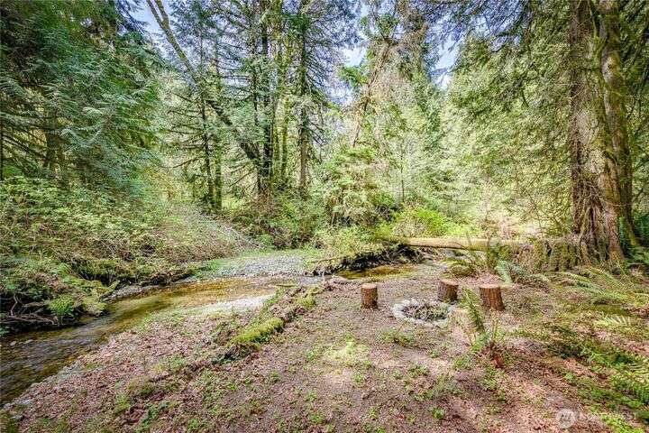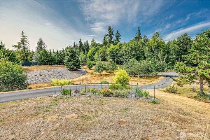 Enter Natures Garden with beautiful Olympic Mtn view from picture windows or upper deck. Self-sustainable designed Solar panel system, car charger. Large windows open up the living, dining, and kitchen area with its vaulted ceiling. Free standing wood fireplace, water resistant luxury vinyl plank flooring, plush carpet. Primary bedrm with walk in closest, full bathrm. Another full bath and guest/office space. Two more bedrms, half bath and family room on lower floor. Take a hike on this 4.32 acres to the south part of the property where you will find the perfect location, to sit/camp and enjoy the sounds of the creek, surrounded by nature. A little orchard, herb garden, fenced garden and the chicken coop for the self-sustainable scheme.
