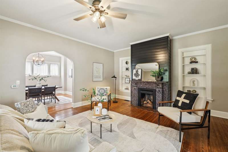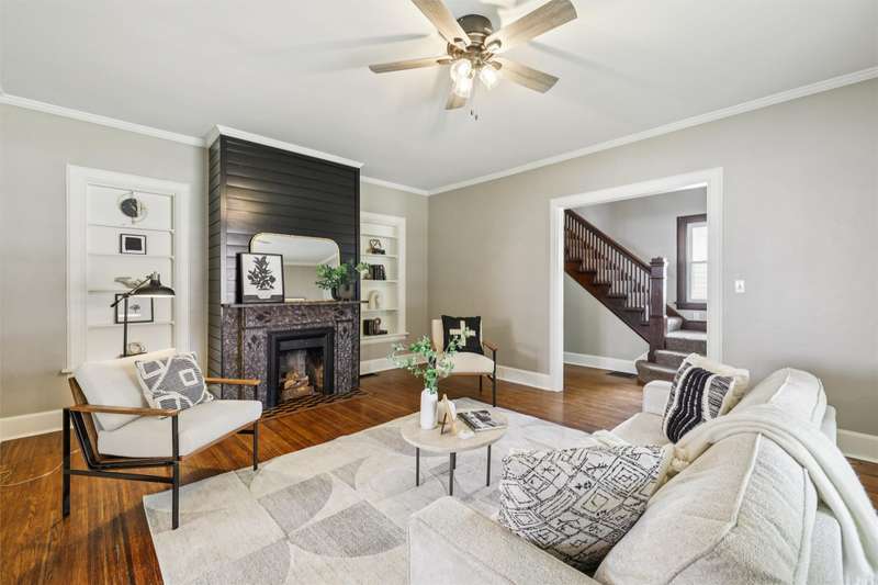 Charm, space and condition are all right here in this property. If you love old homes you will fall in love with this one starting at the open front porch where there is plenty of room for a porch swing, great envelope entryway that leads to the open staircase and an open view into the living room. Original tile detail around the fireplace and the original narrow board hardwood flooring remain. There is a great formal dining room with large windows leading to the original butler's pantry. The kitchen has been updated by a previous owner with mission style oak cabinetry and stainless steel appliances. Back stairway leads up to the owners bedroom area or down a few steps to the family room. You can relax in this large area with polished concrete floors, French door to the deck and fenced back yard. Multi purpose dry bar area can double as homework or craft station. 1/2 bath is close by. Upstairs features 4 Bedrooms, main hallway bath with a tile shower, and an owners suite with an absolute dream closet with laundry hookups. The Full bath has a step in shower and a large tub. New interior & exterior paint and a newer roof. Lots of room for storage or a workshop in the nice sized unfinished LL. 2 HVAC's
