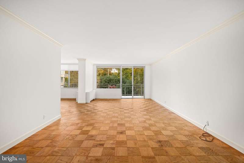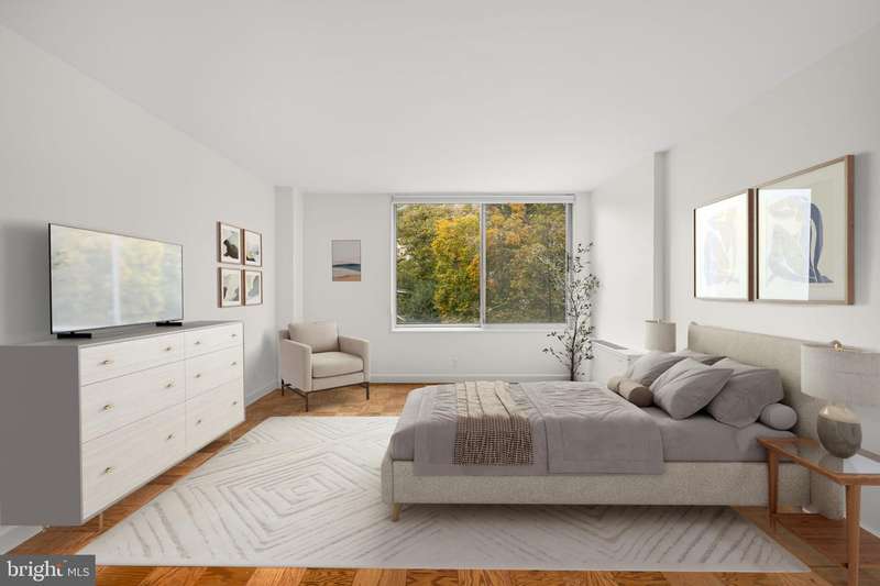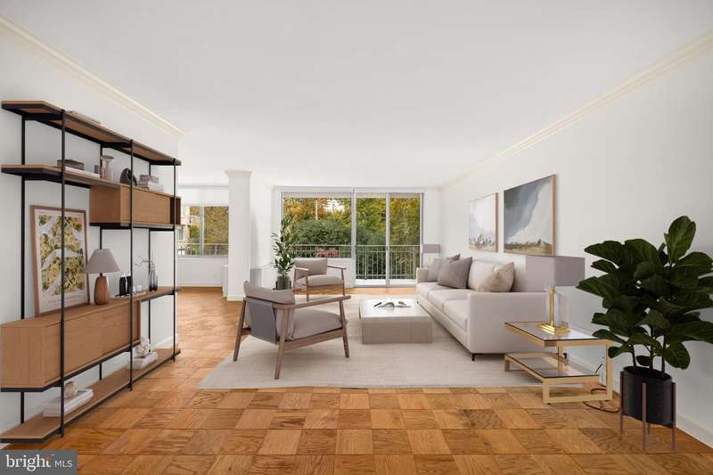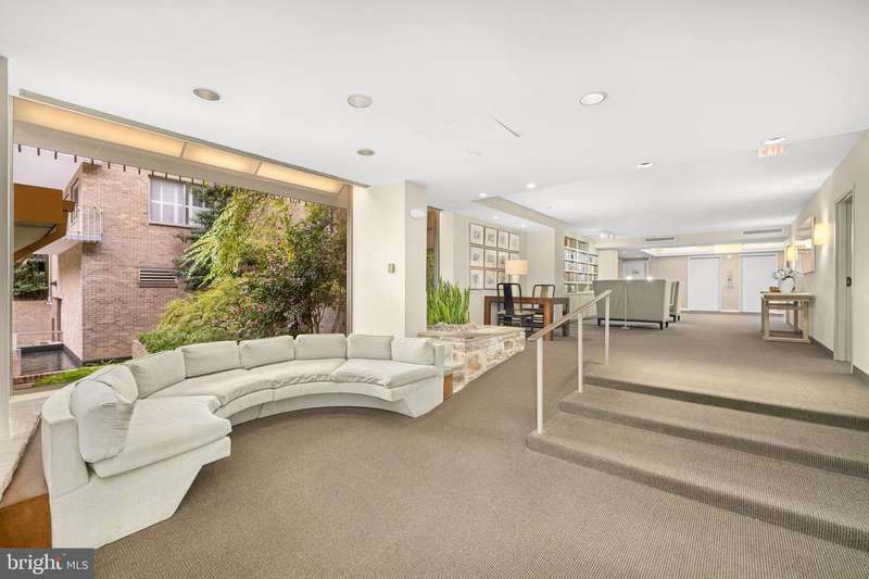 Welcome to Cathedral West Condominium, one of Washingtons distinguished Best Addresses, ideally situated in a quiet yet central location along Cathedral Avenue. Residence 712 offers exceptional space, classic design, and peaceful views overlooking the buildings elegant fountain and landscaped grounds.A gracious entry opens into an expansive foyer leading to a sun-filled living and dining area with hardwood floors, crown molding, and oversized windows that frame the tranquil courtyard below. The dining room, positioned with a corner of windows, provides a bright and airy setting for entertaining or everyday living.The table-space kitchen features granite counters, a glass-tile backsplash, stainless-steel appliances, and a walk-in pantry. The bedroom suite includes a walk-through dressing area with a large walk-in closet and an ensuite bath featuring dual vanities and contemporary tilework. A guest powder room and multiple closets throughout the home add convenience and generous storage.A private balcony extends the living space outdoors, offering a pleasant vantage point over Cathedral Avenue and the buildings fountain. The residence conveys with a separately deeded garage parking space and storage unit.