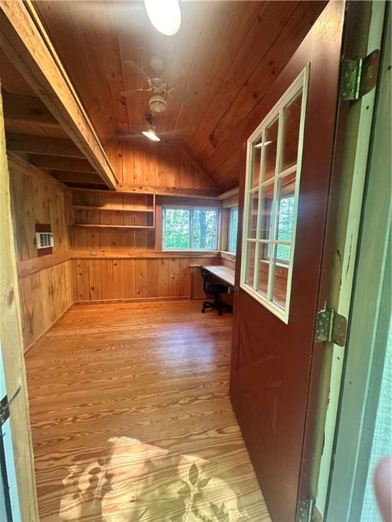 Welcome to your serene retreat! This beautifully maintained 3-bedroom ranch offers spacious, light-filled rooms and timeless hardwood floors that flow seamlessly throughout the home. The open layout with the living room/dining area creates an inviting atmosphere perfect for both relaxing and entertaining. Enjoy the living room wood burning fireplace! This home is nestled on a generous 1.5-acre lot, the property provides ample space for outdoor activities, gardening, or simply enjoying the peaceful surroundings. Whether you're sipping coffee on the porch or hosting summer gatherings in the backyard, this home offers the perfect blend of comfort and nature. The large unfinished basement with the wood stove offers endless possibilities for finishing into a family room with walk out basement. Outside features include a woodshed and an insulated, heated shed with electric which would be a great space to do hobbies or artist studio. Come take a look today!