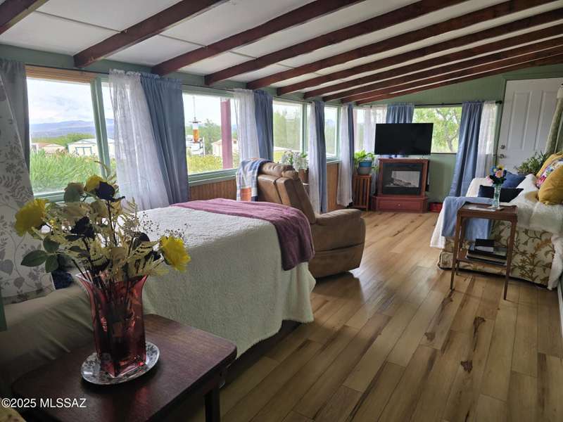 PRICE REDUCTION for this well cared for home with BEAUTIFUL VIEWS! Lovely deck and nobody behind you to blockviews. New AC in 2025, new Washer and Dryer 2024, new Microwave 2025 and roof redone 2023. Efficient kitchen, well designed bedroom with tons of built ins and full bath. Large Arizona room with a wall of windows to enjoy thosespectacular views and includes a cozy Amish built fireplace. Easy care landscaping with decorative gravel and trees, block fence, plus, 12' X 16' Mr. Shed. Come enjoy the good life in this 55+ gated community that offers a Club House, pool, laundry, dog park and much more! HOA fee is $85.00 monthly.