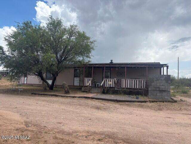 Well loved cutie ready for next lucky homeowner. Efficient kitchen, well designed bedroom with tons of built ins and full bath. PLUS large Arizona Room with windows on both south and west sides to enjoy those Gorgeous Mountain views, AND, it boasts a charming Amish made Fireplace! Washer and Dryer in shed. Easy care landscape with decorative gravel and trees. Block fence. Come enjoy the good life In this gated 55+ community that offers Club House, pool, Laundry, dog park and much more. HOA fee is $85.00 monthly.