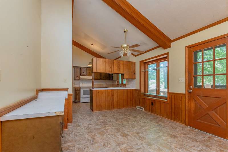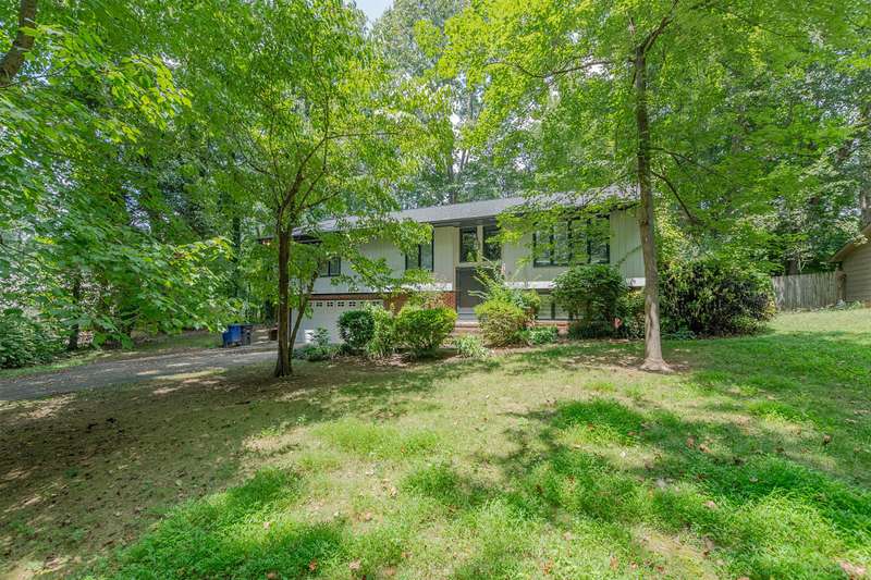 FABULOUS OPPORTUNITY! 1975 built, split foyer home ready to be re-imagined for its next chapter! House is being sold AS IS and needs updating and some repair, but you'll LOVE the two stone fireplaces upstairs and down! The downstairs FP has a wood stove (needs attachment). Be sure to note the wood beamed, vaulted ceiling in the spacious, sunny dining room! Great floor plan with built-in cabinetry up and down, 4 good sized bedrooms, 2.5 baths, lower level laundry, spacious 2 car garage on nearly a half acre shady, flowering tree lot and fenced in back yard with shed & solid deck. NEW ROOF July 2024! The Hampton Woods convenient location makes this is a GREAT opportunity for you to get into a beautiful, established neighborhood and make this solidly built home yours! Great for investors too! Home Inspection and Radon Report Available! Ask Agent for more detail. Hurry to see this opportunity now and imagine the possibilities for you!