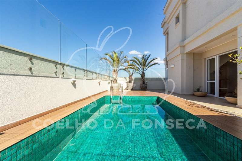 Belíssima cobertura duplex com piscina aquecida privativa, cozinha integrada à varanda gourmet com forno de pizza e churrasqueira, localizados no primeiro piso. No andar superior encontramos quatro lindas suítes, com vistas maravilhosas. Verdadeira casa suspensa com toda segurança de um empreendimento espetacular, com lazer completo, incluindo quadra de tênis, duas piscinas, brinquedoteca, salão de jogos, salão de festas, academia equipadíssima e pet place. Charme, conforto, elegância e privacidade você encontra nesse imóvel exclusivo! Agende uma visita e encante-se!