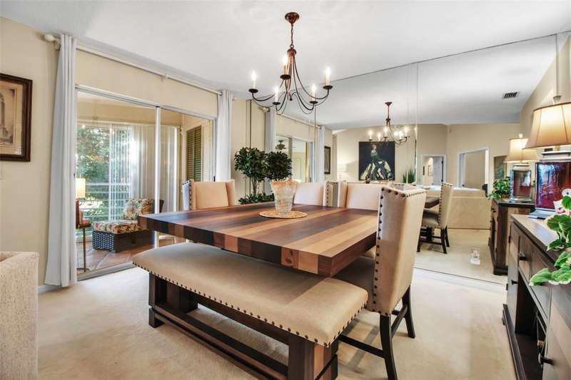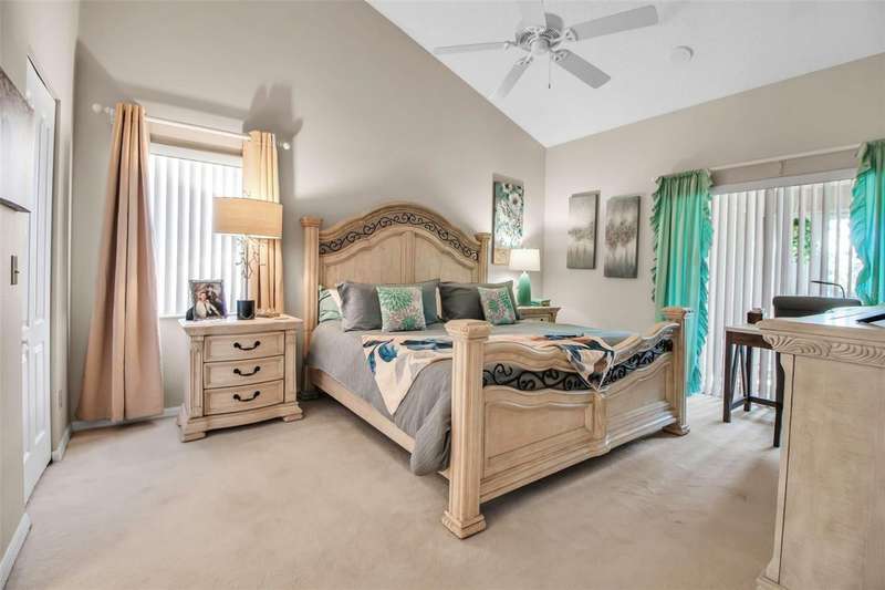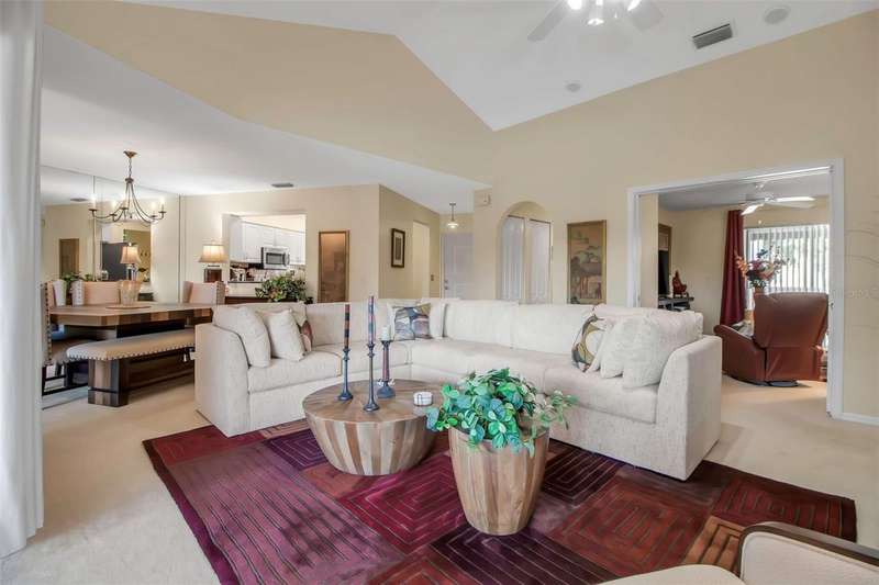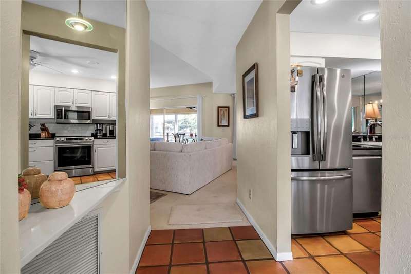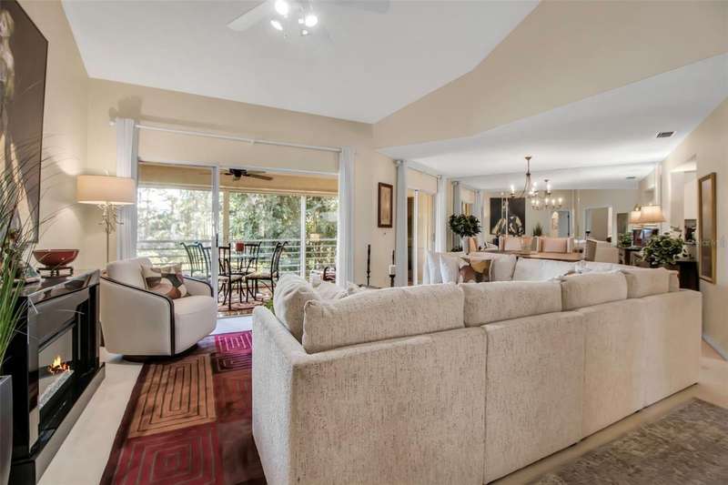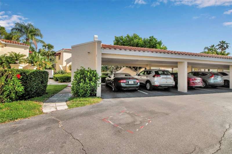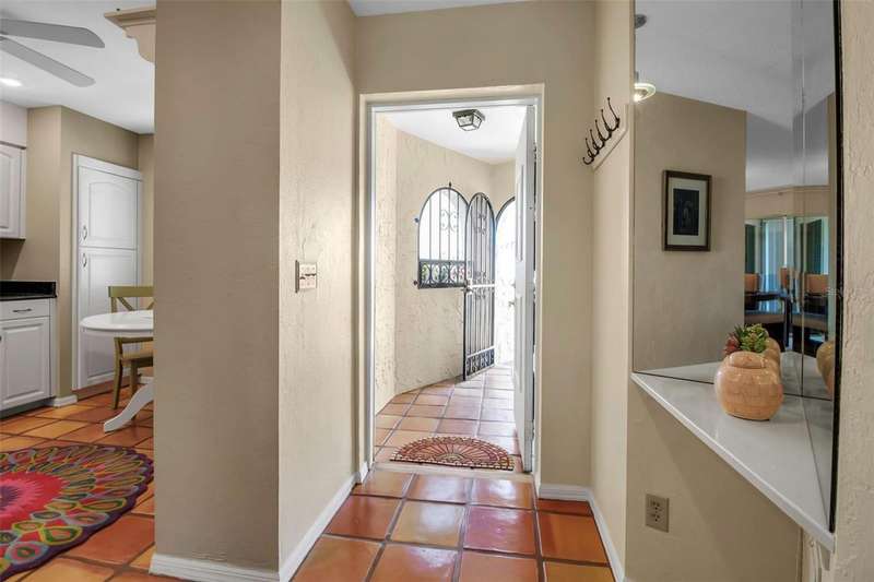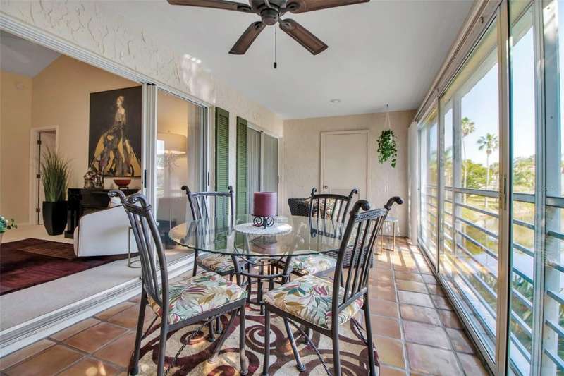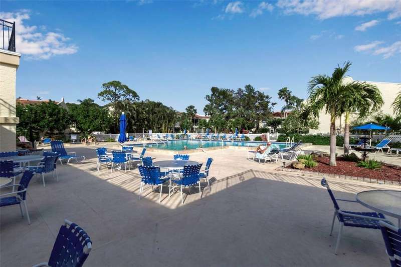 VIZCAYA! You know even the name takes your imagination away! This exceptional 3/2 Lakefront beauty is truly a cut above the norm...includes brand New $11,000 A/C installed 5/27/25 and even showcases designer furnishings which will be included with acceptable offer! This gem has not only one large lake vista but also nestled with views of a second! Charming, Old World Mediterranean architecture with its entry courtyard and tiered fountain will catch your artistic eye. A custom wrought iron gate invites you through the alcove into this gorgeous, immaculate piazza! Beautiful tropical visions from the lake the moment you walk in the door. Immediately you'll feel the comfortable living you have been seeking due to its' expansive wide floorplan designed more like a single-family home than a typical linear condo. Choice eastern exposure off the lake plays to the casual elegance of the interiors enhanced by the natural light and the desirable vaulted ceiling along with pristine, luxury carpet. The Great Room flows out to the big tiled and glassed Florida room - beckoning for relaxation. The stylish, upgraded kitchen is open and airy...granite counters, ease of sliding pull out drawers and with a breakfast table area looking down through planation shutters to the front courtyard with peaceful fountain sounds. Private guest quarters and versatile third bedroom/den with closets have their own indoor/outdoor appeal with a terraced balcony. Attractively updated second bath. The primary bedroom, graciously sized with a vaulted ceiling and views out to the lake, features large walk-in closet and a delightfully upgraded en-suite bath with double vanities, customized mirrors and lightening, soaking tub and Roman walk-in shower. In addition to being able to keep your doors open almost year round to catch cool, cross breezes from the second floor, you get the incalculable value of not having the pitter-patter of anyone above you. (Remember that first floor units do not have the advantage of the high ceilings, breezes and privacy as mentioned - it does matter!.) Vizcaya is known for its outstanding Clubhouse and Olympic sized geothermally heated pool with additional amenities such as exercise room & sauna. Along with all of the conveniences of nearby shopping, approximately 8 miles to the renowned Gulf beaches and close proximity to downtown Sarasota with its cultural activities. Includes carport, is pet friendly, and has the added appeal of being a gated community.