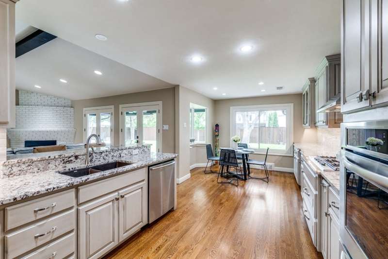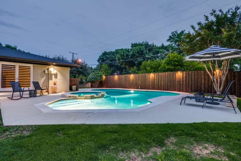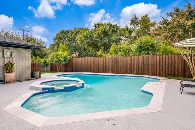 Enchanting Disney streets neighborhood! August updates include: new water and sewer pipes, new main gas line, and resurfacing of swimming pool. This stunning property exudes quality, charm and elegance. Step inside to discover a bright and airy interior, adorned with tasteful finishes, a gourmet kitchen, 5 burner gas cook top, double ovens, custom cabinets & granite countertops. NEW HVAC & Ducts 2024, Sprinkler System & Front door 2024, Roof 2022, Fencing, Landscape Lighting & Garage door 2025. Exterior paint & Gutters 2023. Retreat to the luxurious updated primary bathroom: spa-like ensuite including a designer tub, separate shower, quartz countertops & custom cabinets. Ample space for both relaxation & entertainment inside or outside with a spacious covered patio & pool. Extensively updated throughout. One block from the Northaven walking-bike trail. A Must see!