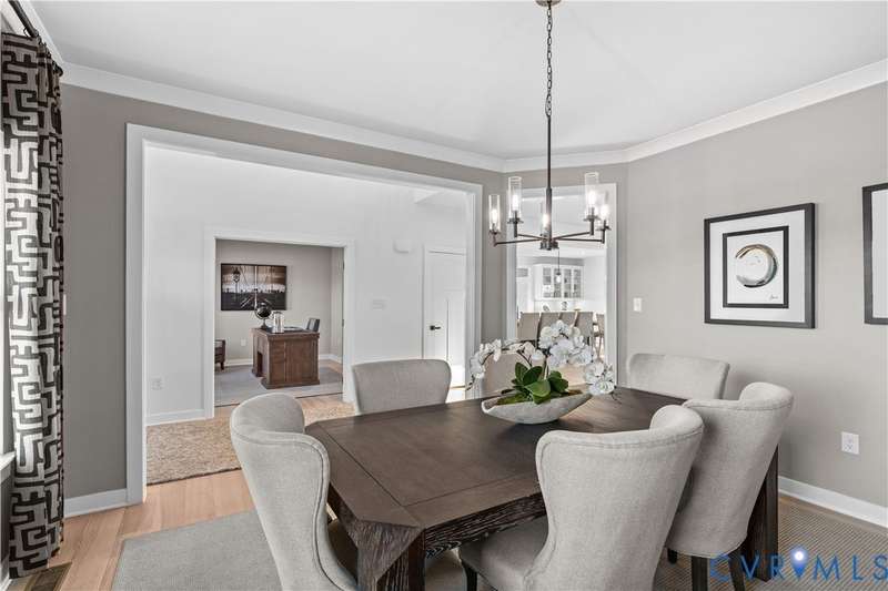 Quick move-in new construction opportunity in the highly sought-after and sold-out Meridian section of Magnolia Green! Rare chance to own a brand-new Normandy floor plan on an oversized cul-de-sac lot with no neighbors on one side. This home backs to serene wooded views and a tranquil retention pond, offering exceptional privacy rarely found in the community. Interior highlights include upgraded LVP flooring throughout most of the first floor, Timberlake cabinetry with a stylish two-tone navy island, elegant quartz countertops, and sleek black fixtures. The spacious layout features 4 bedrooms, 4 full baths, an oversized loft, a study (possible 5th bedroom), and a library. Outdoor living is enhanced with a covered front porch and composite rear deck. Located in a top-rated Chesterfield school district and ready for move-in by November/December 2025 - just in time for the holidays. Residents enjoy access to Magnolia Green's award-winning amenities including golf, pools, trails, and more.