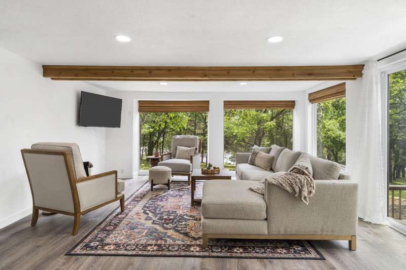 Welcome to 1480 Peebles Point Rd - A Front-Row Seat to Table Rock Lake!Prepare to be wowed by panoramic lake views the moment you step inside. This beautifully remodeled lakefront retreat has been completely updated over the past year, offering the perfect blend of modern style and lakeside comfort. It is only steps away from the water and the nearby dock.Nearly everything is brand new--including the flooring, drywall, lighting, interior and exterior paint, plumbing, electrical, cabinets, countertops, windows, water heater, and septic system--making this home truly move-in ready and a stress-free investment.Featuring 3 bedrooms, 1 spacious bathroom, a detached garage, and a separate mower shed, this property is packed with charm and functionality. Relax on the cozy covered front porch or take in the stunning views of crystal blue Table Rock Lake from the expansive back deck.Just a short walk from the home, you'll find your dock with a 10x24 boat slip and brand new electric lift--available for additional purchase.This home also has the option to be sold fully furnished. Just bring your boat and lake toys--your summer getaway is ready to go!