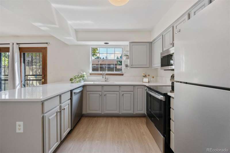 Cherry Creek Meadows Lexington model--the best one ever on market! Best Value! Aggressive Seller. New flooring, paint, quartz countertops, new stainless range, refrigerator, dishwasher and microwave. NOTE: basement has family room, bedroom and bath! Open kitchen with breakfast bar. Dining area with access to deck. Brick gas fireplace in living room. washer & dryer included. 3 bedrooms up with spacious 16 foot primary. Quality bath remodel features large new shower. HVAC serviced and sewer scoped. This community has lush, mature landscaping and broad open spaces- parklike . Cherry Creek Trail is around the corner. A longtime favorite townhome development in semi-secluded spot in south east Denver. Such a good townhome community, owner purchased another one. Ask about the incentive financing available. See supplements.