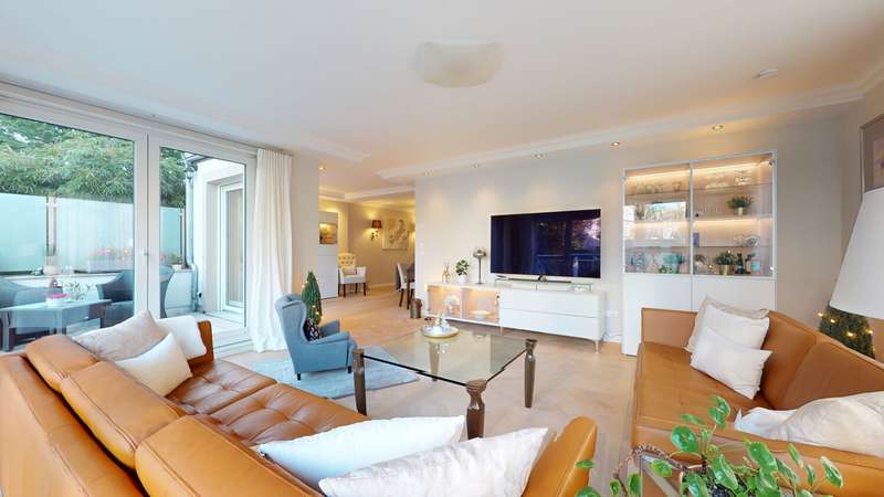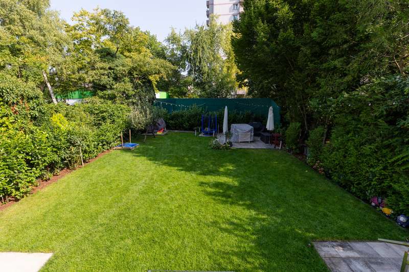 This beautiful home presents itself in a sought-after location in Frankfurt-Ginnheim - a top renovated, spacious and stylish house. Situated on a plot of around 504 m², the property combines historical charm with modern living comfort. Originally built in 1938, the house was completely renovated in 2021 to the highest quality standards and with great attention to detail - and now boasts a living space of around 316 m² and around 117 m² of additional usable space. The individual residential units on the first floor, 2nd floor and 3rd floor/loft can be accessed via a bright and well-kept hallway. On the first floor, you are greeted by a stylish entrance hall that leads into the spacious, representative living area. This is spacious and flooded with light, with a modern, high-quality fitted kitchen adjoining. Flowing transitions, large window fronts and direct access to the terrace and the large garden create an atmosphere that is both stylish and inviting - ideal for prestigious living. In the open-plan living area, the kitchen, dining area and living room merge into one another over an area of around 90 m². The beautiful and rare Versailles parquet flooring, which has been laid in the living room with a plank border, is particularly noteworthy and separates it from the rest of the living area. The first floor is rounded off by a modern guest WC. A stylish wooden staircase in the hallway on the first floor leads you to the second floor and connects both levels of the apartment to form a spacious living ensemble. Two bright children's bedrooms and a high-quality, modern bathroom with exquisite fittings and a bathtub await you here - a place to relax and feel good. A separate dressing room and a spacious bedroom with floor-to-ceiling windows and access to an en suite bathroom with high-quality fittings complete this well-thought-out retreat. Herringbone parquet flooring has been laid throughout the entire second floor. One detail that makes everyday life easier is the laundry chute that leads from the second floor down to the basement. The house's consistent lighting concept runs stylishly through all floors. Integrated LED and halogen spotlights create pleasant ambient lighting, set specific accents and emphasize the architectural clarity of the rooms. Particularly in the bathrooms, corridors and open-plan living areas, this creates an atmospheric ambience that can be perfectly adapted to any time of day and situation. Another architectural gem is the historic wooden staircase in the hallway, which has been preserved and refurbished from its original year of construction. This leads to the rental apartment on the second floor and the third floor/loft. On the 2nd floor of the building is a three-room apartment with a living space of around 80 m², which is currently rented for €1,280 rent. The apartment impresses with its high-quality furnishings, which include elegant parquet flooring and modern electric shutters. A special highlight is the approximately 25 m² terrace, which has a wonderful view of the garden. The spatial layout and high-quality furnishings make it possible to use the house as a spacious family home. In the converted attic (third floor) there is a charming little one-room apartment with integrated kitchenette and toilet - ideal for guests, older children or as a quiet retreat for working and relaxing. The basement also surprises with its high-quality use: here there are two fully-fledged rooms with direct access to the terrace and a private sauna - a personal wellness area in your own home. In addition to generous usable space and storage facilities, the practical utility room is also located here. This ready-to-move-in property combines stylish living with functionality, flexibility and sustainability. The perfect combination of high-quality refurbishment, historic flair, atmospheric light, intelligent planning and modern usage options makes this house a rarity on the Frankfurt real estate market.