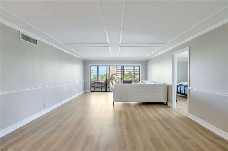 Welcome to your freshly remodeled 3-bedroom, 3-bathroom end-unit condo in the highly desirable Moorings community! Located on the 5th floor of the recently renovated Madrid Club, this residence offers an open, light-filled layout with expansive windows that capture the coastal surroundings. The Madrid Club showcases a fresh, modern redesign and outstanding amenities, including a Bayfront pool, fitness center, social room, card room, outdoor kitchen and party area, kayak racks, and a launching dock with boat slips available for lease. Onsite property management adds peace of mind. Just steps from Naples' award-winning beaches and within walking distance to the upscale dining and shopping of Venetian Village, this home also includes a garage parking space and air-conditioned storage. Optional membership to the exclusive Moorings private beach park is available. This move-in-ready condo is the perfect opportunity to secure your piece of the Naples lifestyle in time for season!