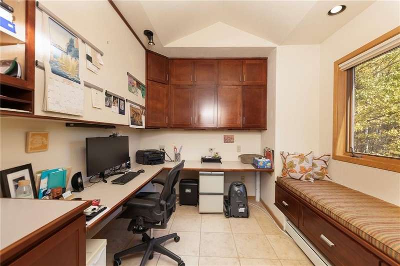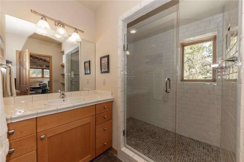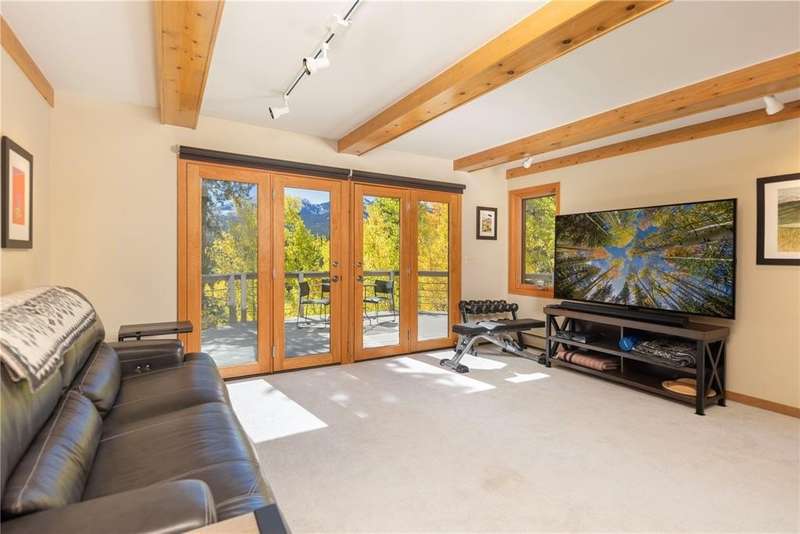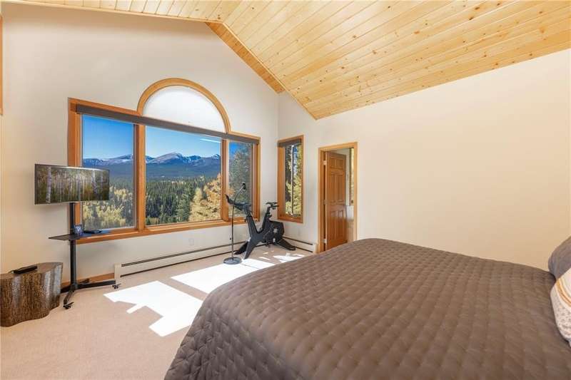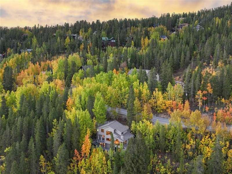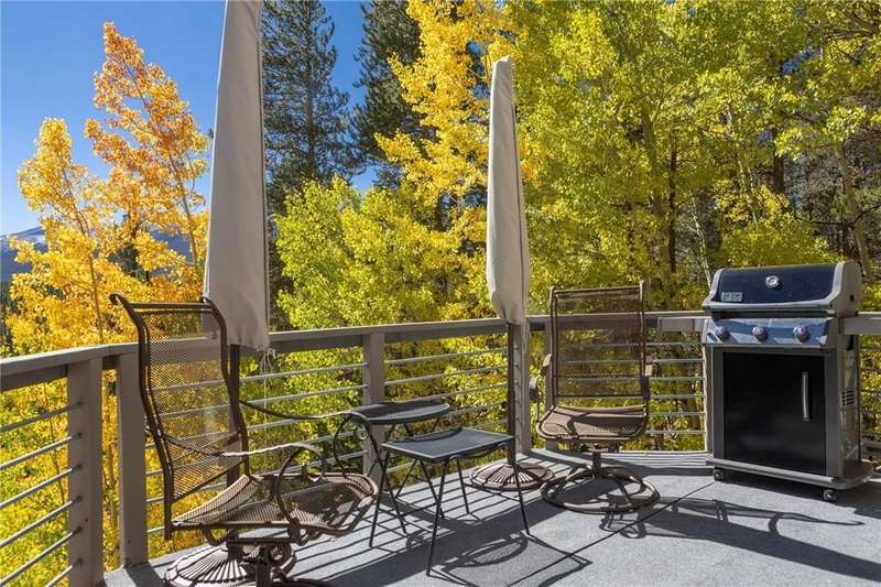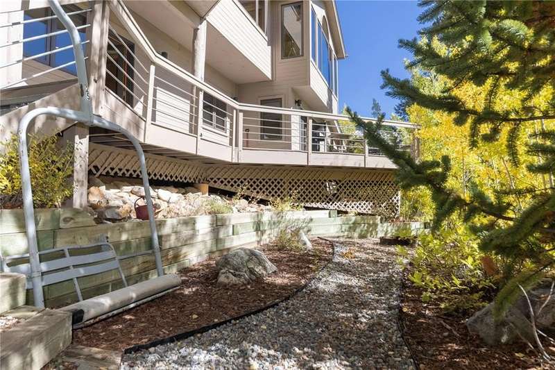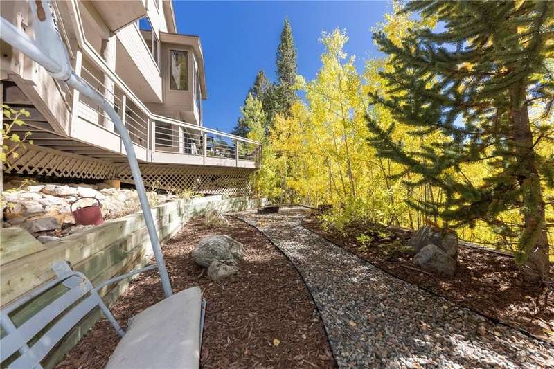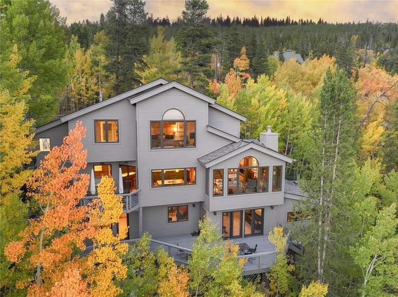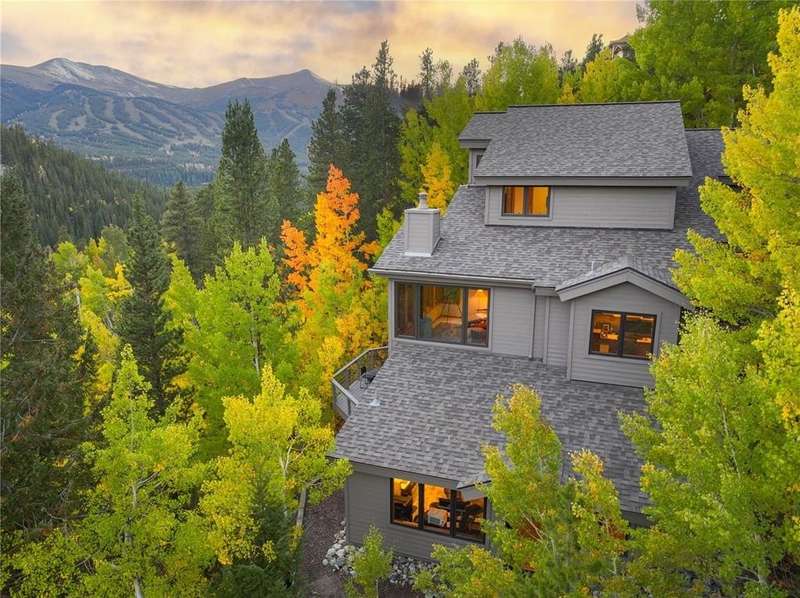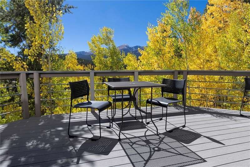 Nestled in a serene forest of aspens and evergreens, this 4-bedroom, plus office, contemporary mountain retreat in Breckenridge captures the essence of Colorado living. Bathed in passive solar light, the home offers breathtaking views of ten iconic peaks, including Quandary, Peak 10, Baldy, Red, and Hoosier Ridge. Set on 1.2 acres, the property has been thoughtfully updated with newer carpet, fresh exterior paint, a newer roof, expanded driveway, and newer front entry stairs, decks and exterior staircases. Inside, the heart of the home is a fully remodeled chef’s kitchen featuring William Ohs custom cabinetry, a Subzero refrigerator, gas cooktop and double oven, and old-growth Hickory floors that flow into the dining area. Step out onto the adjacent deck for grilling with a BBQ directly connected to the gas line, perfect for entertaining under the stars. A Danish soapstone wood-burning stove anchors the main living room, and adjacent you will find a private office including a cozy reading nook and inspiring views of Baldy, while a secondary family room on the lower level opens to a sun-drenched deck ideal for morning coffee or afternoon lounging. The spacious attached garage includes storage cabinetry and a dedicated workshop. With panoramic views and a quick walk to the bus stop, this property offers it all. Whether you're seeking solitude, adventure, or a place to gather, this home provides a rare blend of craftsmanship, comfort, and alpine beauty.