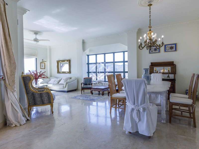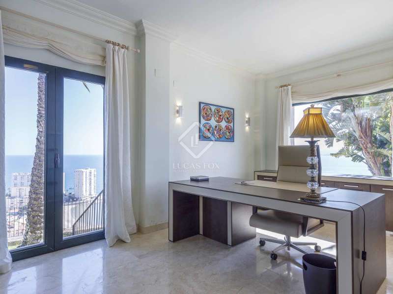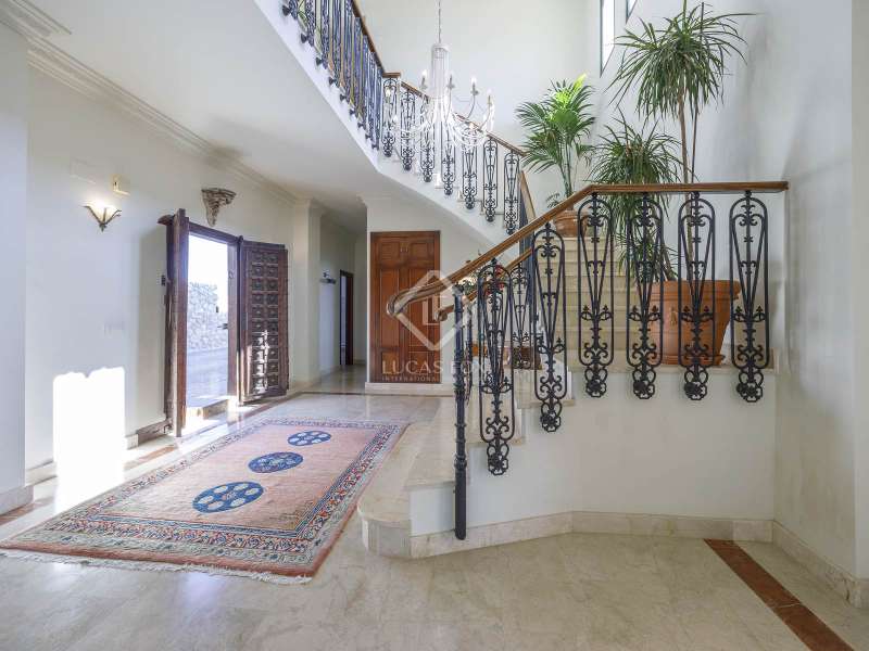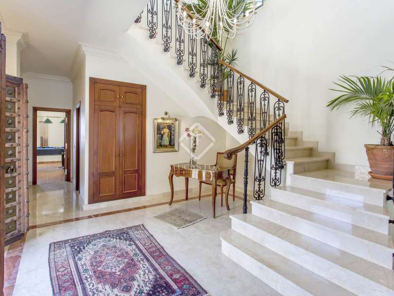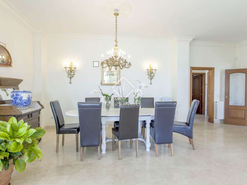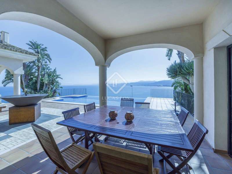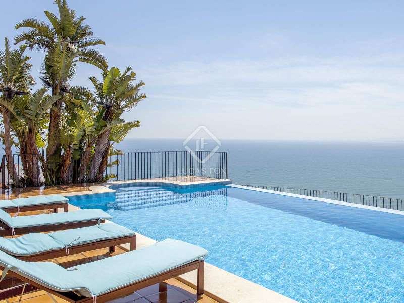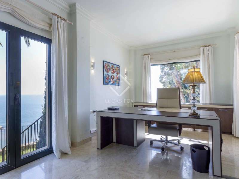 Lucas Fox presents this exceptional property . It is a Mediterranean-style villa , with two characteristics that make it unique. On the one hand, the shape of the U-shaped plot surrounded by a road, located on a lower level that allows you to enjoy unique views. In addition, it does not have any neighbors on the sides, so it enjoys a lot of privacy. On the other hand, the southeast orientation of the house allows you to enjoy abundant natural light. The ground floor consists of a double-height entrance hall , a kitchen, a large living-dining room, two bedrooms and a full bathroom . All stations have access to a magnificent terrace with a saline pool and sea views. The pool area has a shower and a toilet. The parking lot is currently converted into a games room and has a billiards. On the first floor is the night area composed of four bedrooms with private bathroom and access to the terrace with sea views. It is worth highlighting the quality of the materials and construction characteristics. It has wide double thermoclay partitions, four-meter ceilings, armored PS13 approved glass with high-end carpentry and a masonry wall that surrounds the entire 8-meter-high plot . The property has heating by radiators with a diesel boiler and air conditioning.