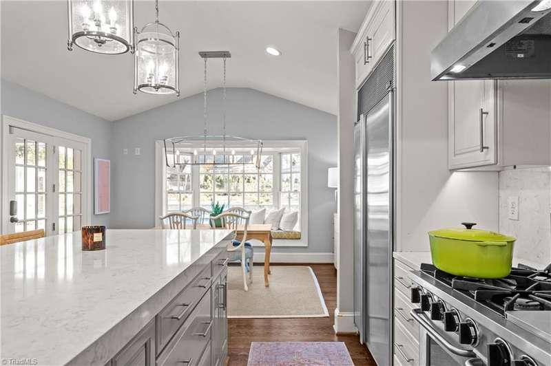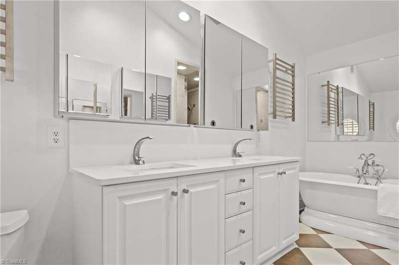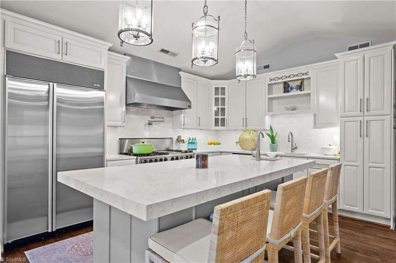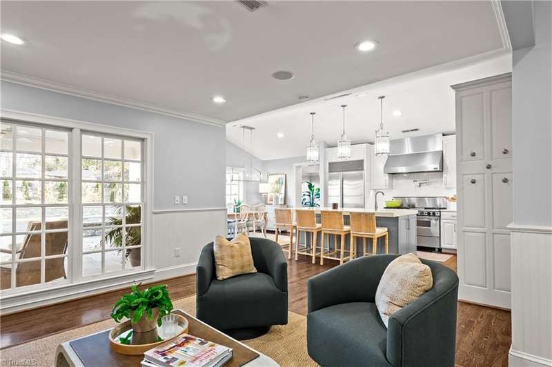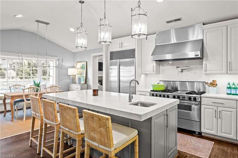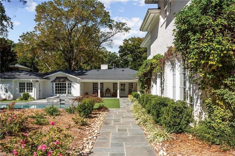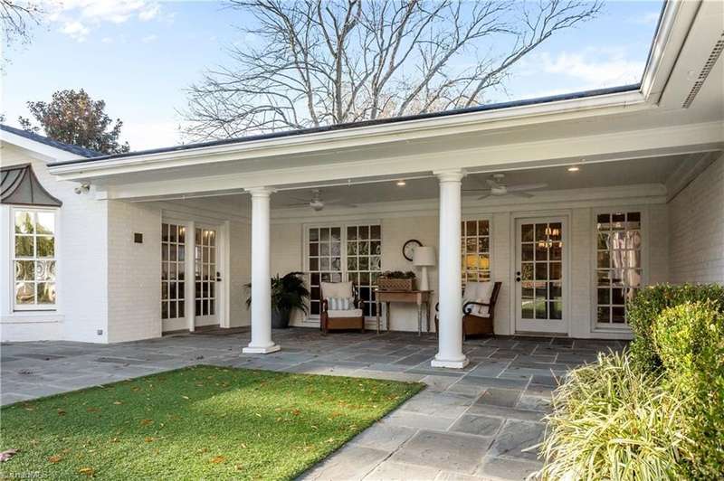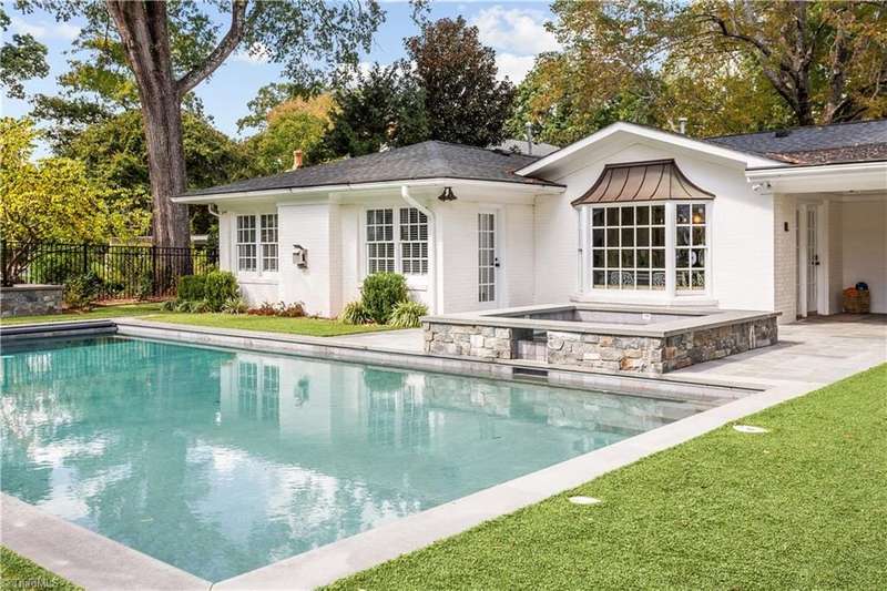 Incredible opportunity - All brick ranch situated on .57 acre w/ views of Greensboro Country Club golf course. So much to offer for ALL! Beautifully renovated and added on to through the years 4 bedrooms in the main house (each with own full bathroom). Front AND back covered porches. Beautiful hot-tub and heated pool - great views of this gorgeous setting from inside the home all year long. Open & bright kitchen with oversized island, large bar serving area, and cozy keeping room. Multiple living spaces. Amazing 2 story pool house with 1 bed/1 bath guest suite, workout room, bonus flex space and storage - 1600 additional heated & cooled sq/ft not included in house sq measurement - plus an oversized 2 car garage wired for EV charging!! 3 fireplaces - 1 wood burning, 2 w/ vented gas logs. Generac generator, large fenced in yard, automatic covered pool - an incredible home!!