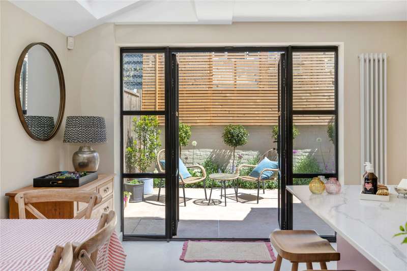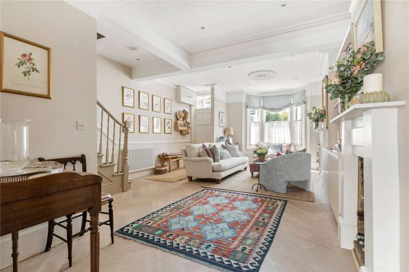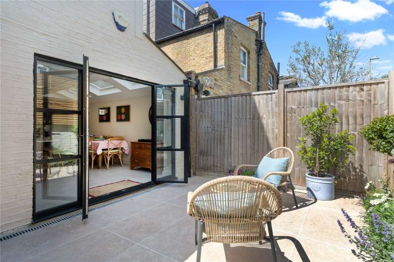 Lovingly nick named Little India, this enclave of Battersea is well known for its terraced Victorian houses. Over recent years the popularity of the area has resulted in the foot print of some of the homes being expanded with side, rear and roof extensions and this home has been exceptionally expanded to accommodate the ideal family home with a sympathetic stylish interior. It has a west facing front room with wood floors and a feature fire place. This leads to the kitchen dining room with sold wood oak hand painted kitchen with quartz worktop. Crrittall style windows flows to the landscaped patio garden which gets the morning light. Further on the ground floor is a WC. The first floor main bedroom suite has ample storage and a generous, luxurious bathroom with a roll top bath and spacious shower. There is a further bedroom and bathroom on this level. There is a further two bedrooms and a shower room. Each room has been carefully designed and considered. The house is within walking distance of the L'école primaire de Wix on Wix’s lane, L'Ecole de Battersea on Trott Street, Thomas’s Battersea and also the Little Red Hen nursery school and Christchurch Church of England School over the river Thames. Clapham junction 5 mins away, and Battersea Power Station ande Chelsea are both nearby.