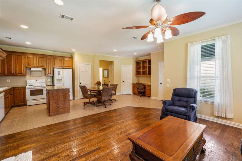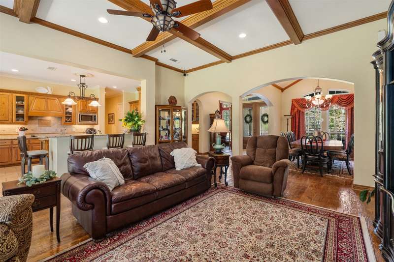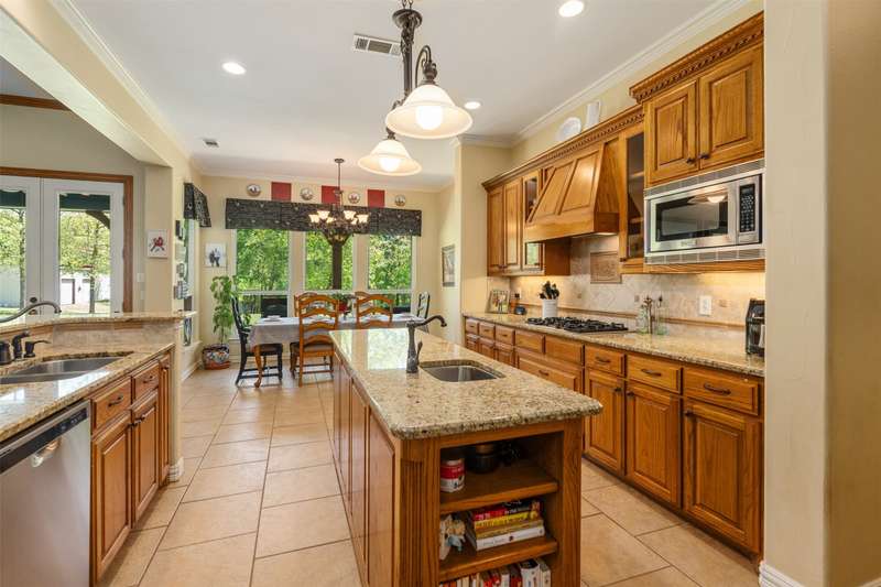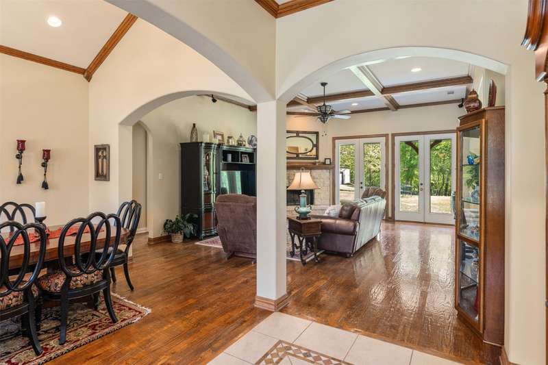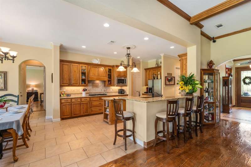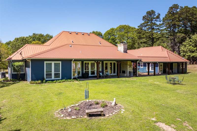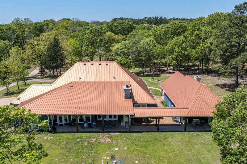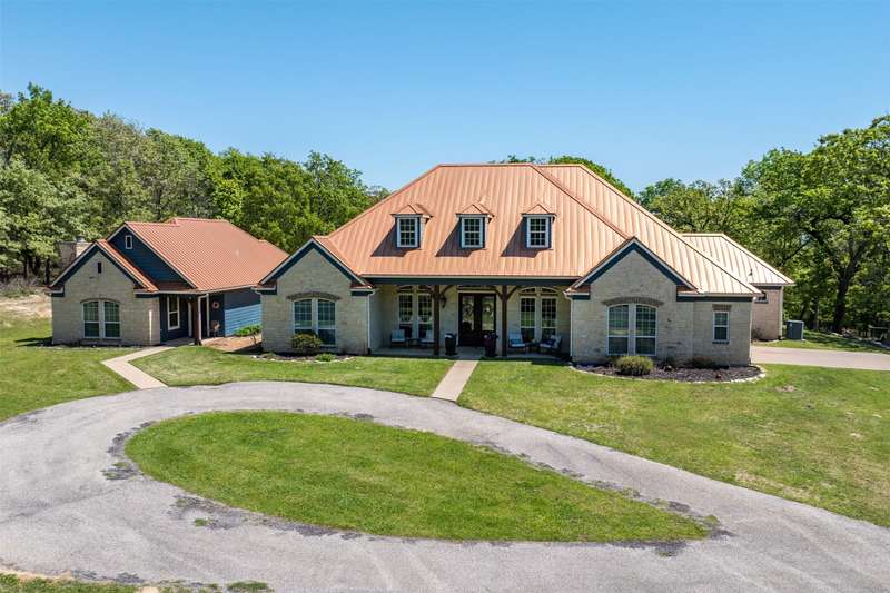 Discover a stunning retreat on 7.7 acres in the exclusive, gated Safari Waters Ranch just 90 minutes from Dallas were EXOCTIC WILDLIFE roams freely(Zebra, Fallow, Axis, White Tailed, and Pere Davis Deer.) This would be a great MULTIGENERATIONAL HOME! The main home appro 2813 sq ft features beautiful hand scrapped wood floors, custom ceilings, two dishwashers, a double oven, an icemaker, and a dedicated dog room with a dog shower. The spacious laundry room connects to the oversized master closet and includes a second dishwasher and room for a refrigerator and freezer. A separate but attached 1,044 sq ft guest home offers one bedroom, one bath, a large living area, kitchen with island, plus washer, dryer, and refrigeratorperfect for guests or multigenerational living. Enjoy covered porches overlooking free-roaming exotic animals, a fenced dog run, and a large workshop approximately 1800 sq ft with a bathroom, electric, and potential living space. Community amenities include three private lakes stocked with largemouth bass, a boat dock, indoor pickleball court, scenic trails and a RV and Picnic area. Peaceful, private, and full of charmthis is your chance to own a truly special property.