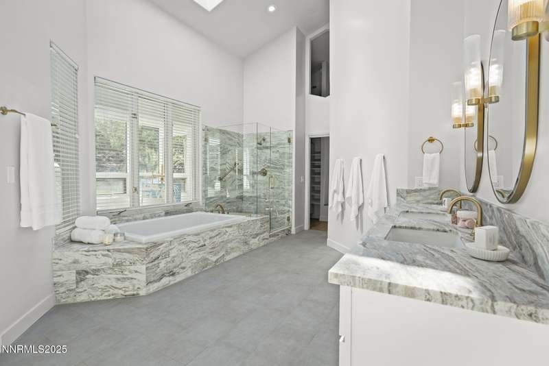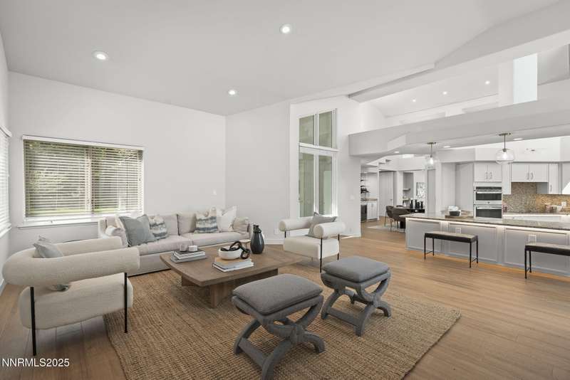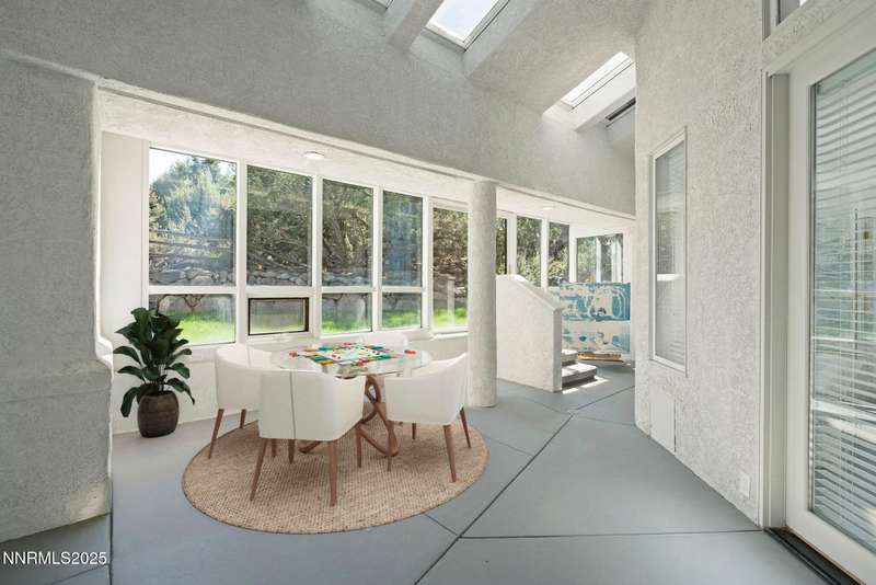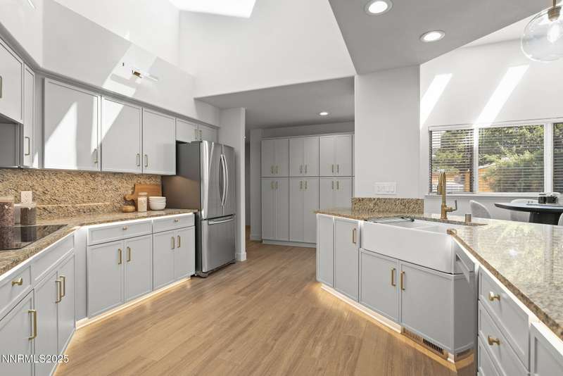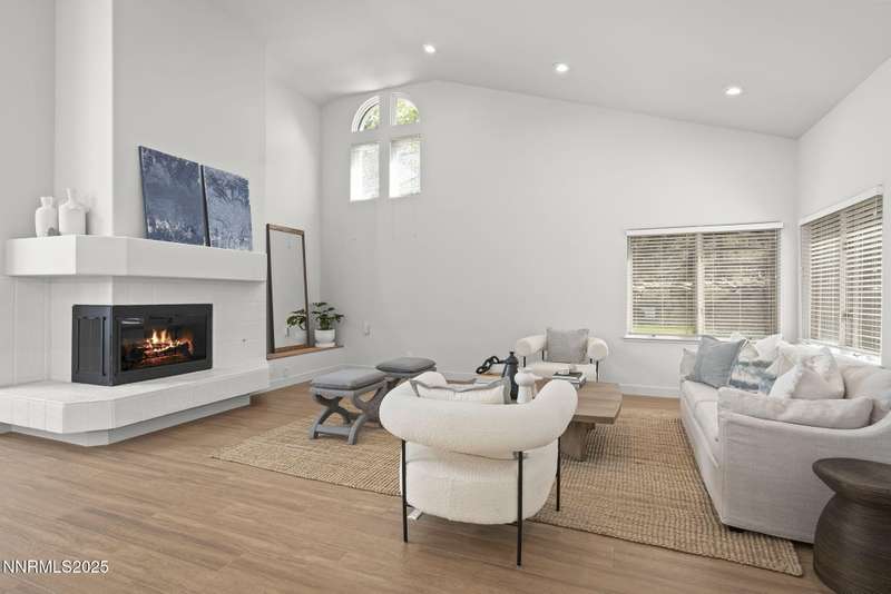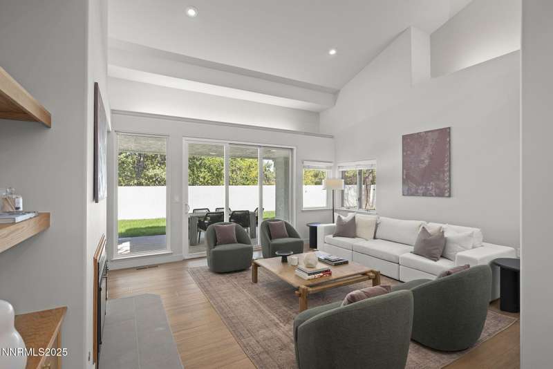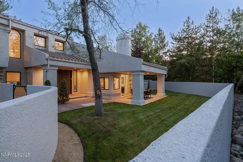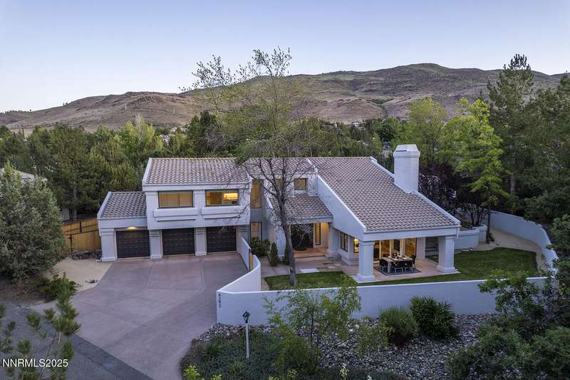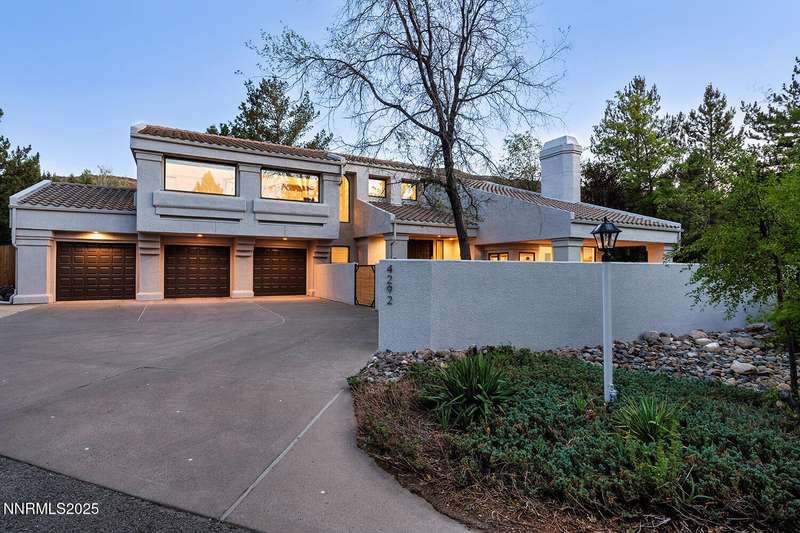 Extensively Renovated in the Heart of Caughlin Ranch. This newly reimagined custom home offers the perfect balance of outdoor entertaining and refined living. Nestled in one of Reno's most desirable neighborhoods, surrounded by miles of beautifully maintained walking and biking trails, tranquil ponds and open green space are just steps from your front door. Over the past year, this home has undergone a stunning transformation with over six hundred thousand dollars in recent renovations and improvements—every detail chosen to blend modern sophistication with the natural beauty of its setting. Soaring cathedral ceilings rise above expansive living areas anchored by two elegant fireplaces. Walls of glass and skylights fill the space with natural light, framing views of mature trees and the mountains beyond. Multiple covered patios create seamless indoor-outdoor living—ideal for hosting gatherings, enjoying a quiet morning coffee, or savoring an evening glass of wine. The stunning chef's kitchen flows effortlessly into the great room, creating a warm hub for daily living. A generous island invites conversation, while refinished cabinets, designer lighting, a premium induction cooktop, farmhouse sink, and custom pantry combine style with function, making cooking and entertaining a joy. On the main level, the oversized primary suite offers a serene retreat. Spa-like finishes include a double vanity, luxurious soaking tub, and custom shower. A remarkable two-story walk-in closet provides abundant storage and a touch of architectural drama. Upstairs, three additional bedrooms and two full bathrooms ensure comfort and privacy for family or guests. A versatile enclosed loft—complete with wet bar and beverage fridge , offers the perfect space for a home office, playroom, or additional lounge area. The exterior is equally impressive, with fresh stucco and paint, new and thoughtfully designed landscaping, and a custom wood and iron entry gate marking the entry. A lush lawn, enclosed by a privacy stucco wall, creates a secure and tranquil outdoor escape. Caughlin Ranch residents enjoy exceptional community amenities, including a recreation center, tennis courts, and swimming pool—all just moments away. With coffee shops, restaurants, top rated schools and shopping nearby, this home offers unmatched convenience alongside its peaceful, trail-connected setting.